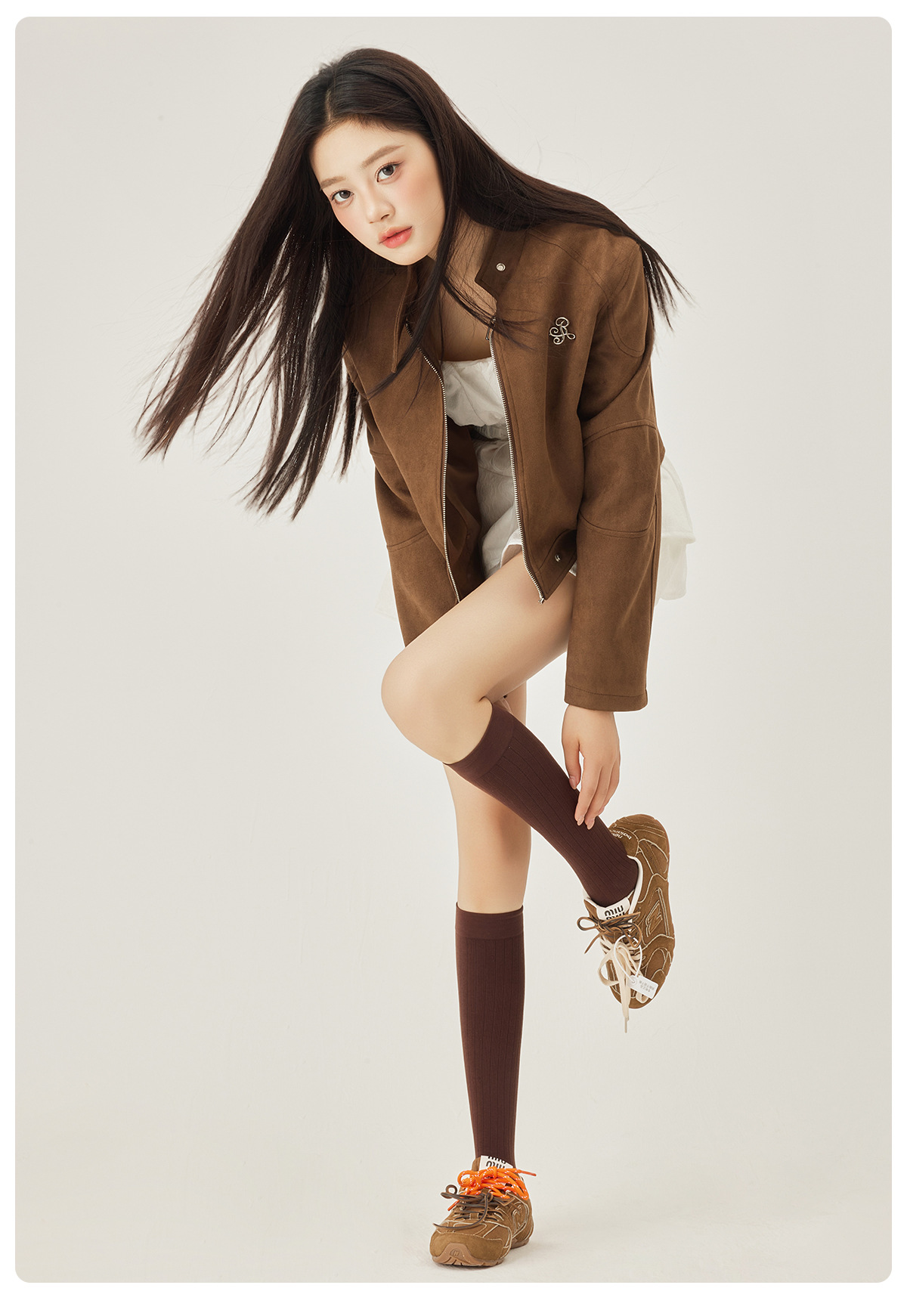秋冬新小腿袜子女士纯色百搭微压显瘦长筒袜简约韩版芭蕾风堆堆