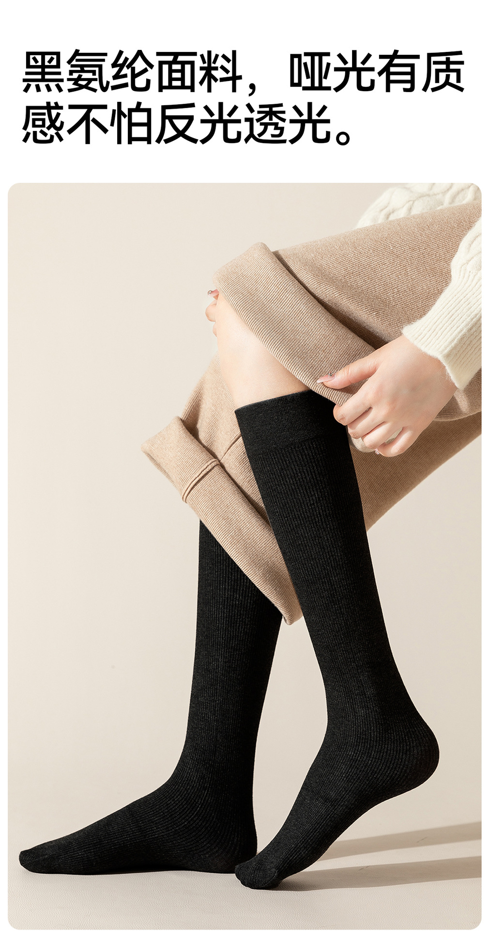 可斐压力小腿袜秋冬季美腿灰色长筒袜女款保暖护膝过膝袜高筒袜子