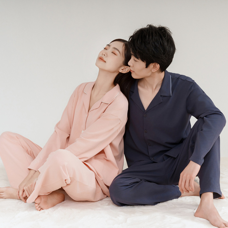 ランタンモーデール長袖カップルパジャマ超柔らかい男女ホームウェアファッション快適スーツカーディガン