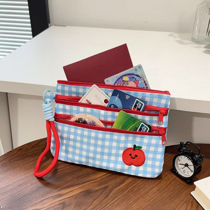 かわいいチェック柄の化粧品バッグ女性のための大容量ポータブル旅行ポータブルパーティション口紅化粧品収納袋