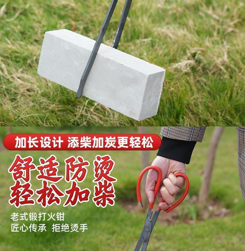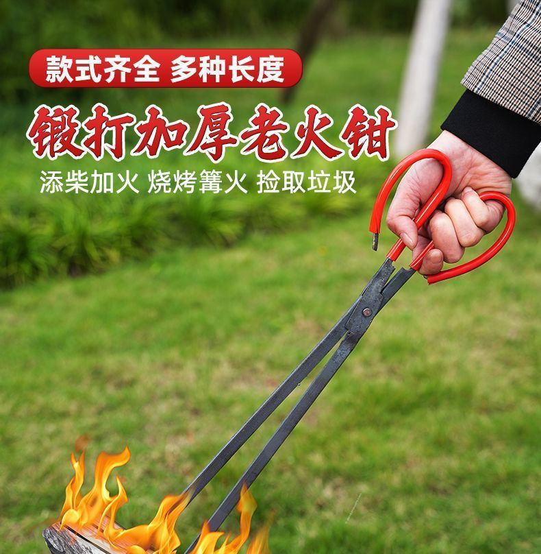 古い火鉗子家庭用鍛造火鉗子環衛ごみクリップが厚い炭火鉄クリップステンレス火鉗子