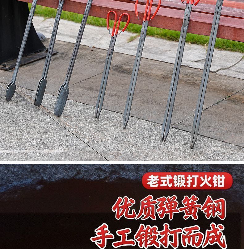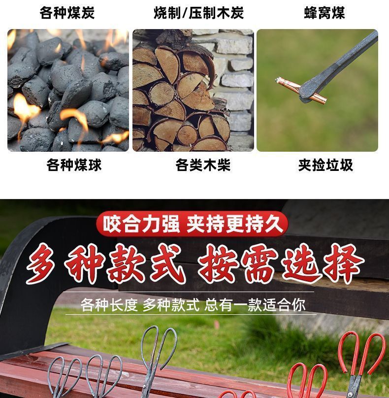 货号 老式火钳家用锻打火钳环卫垃圾夹子加厚炭火铁夹子不锈钢烧火钳子