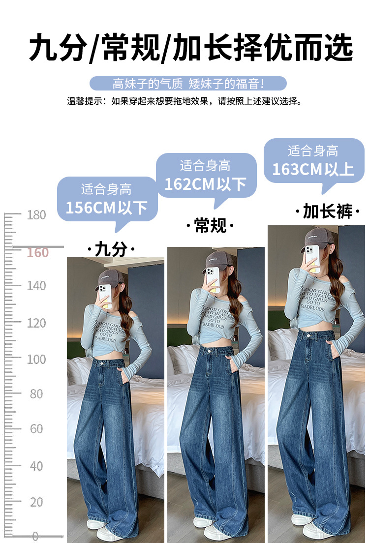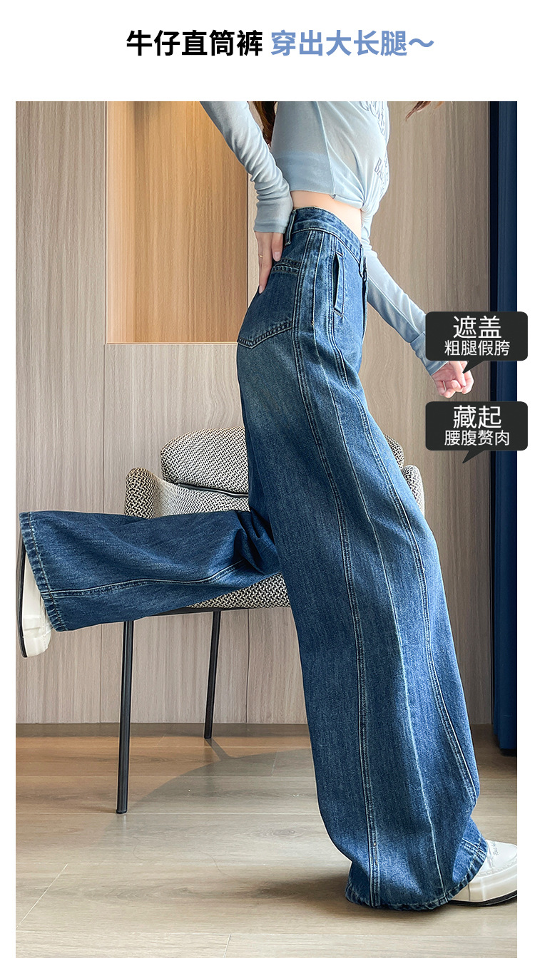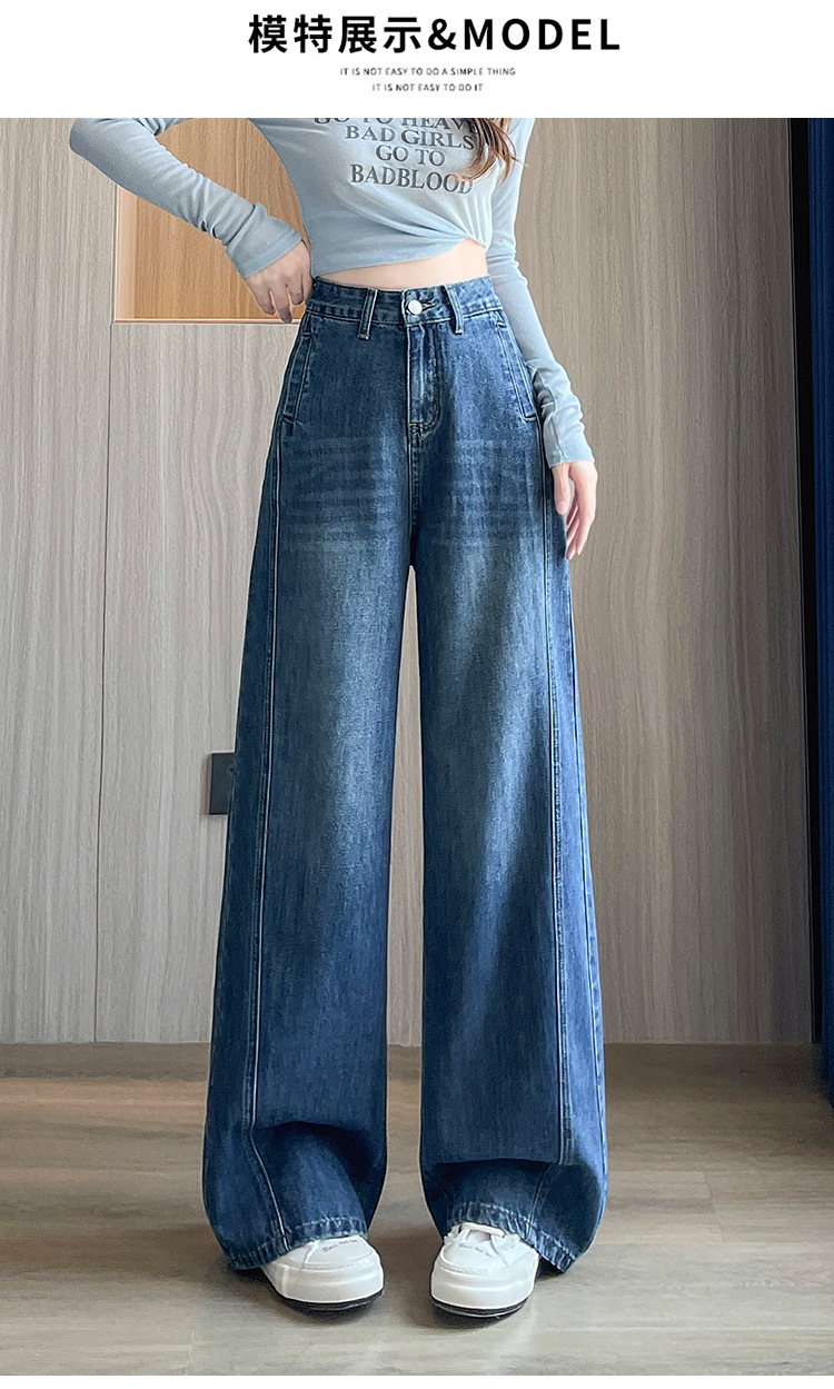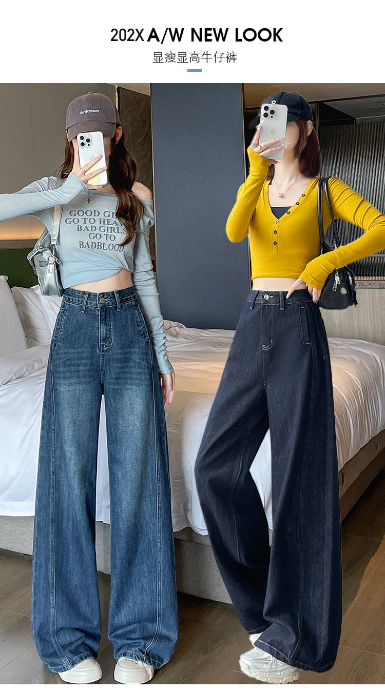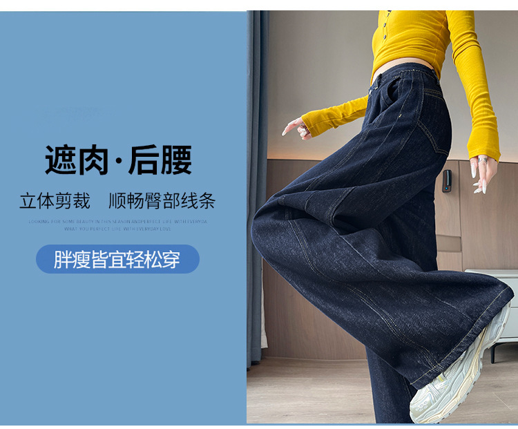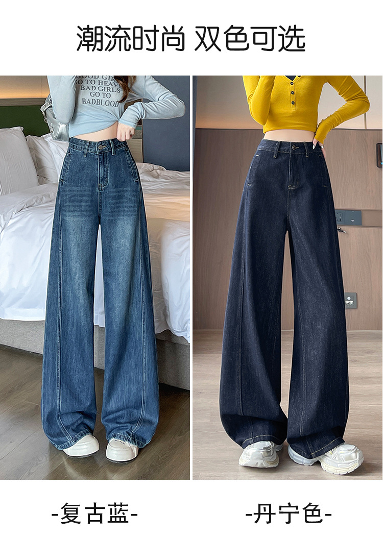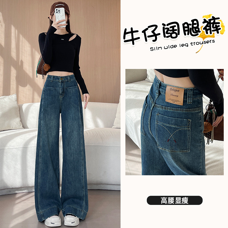 复古蓝阔腿牛仔裤女秋季2025新款高腰宽松时尚小个子拖地直筒裤子
