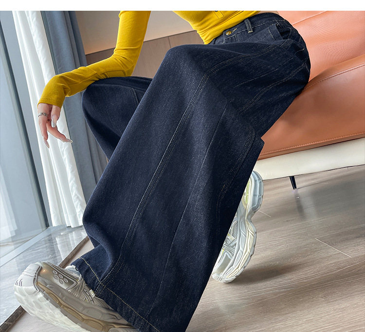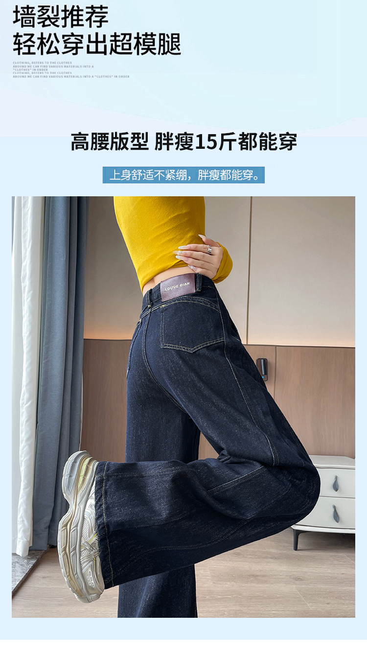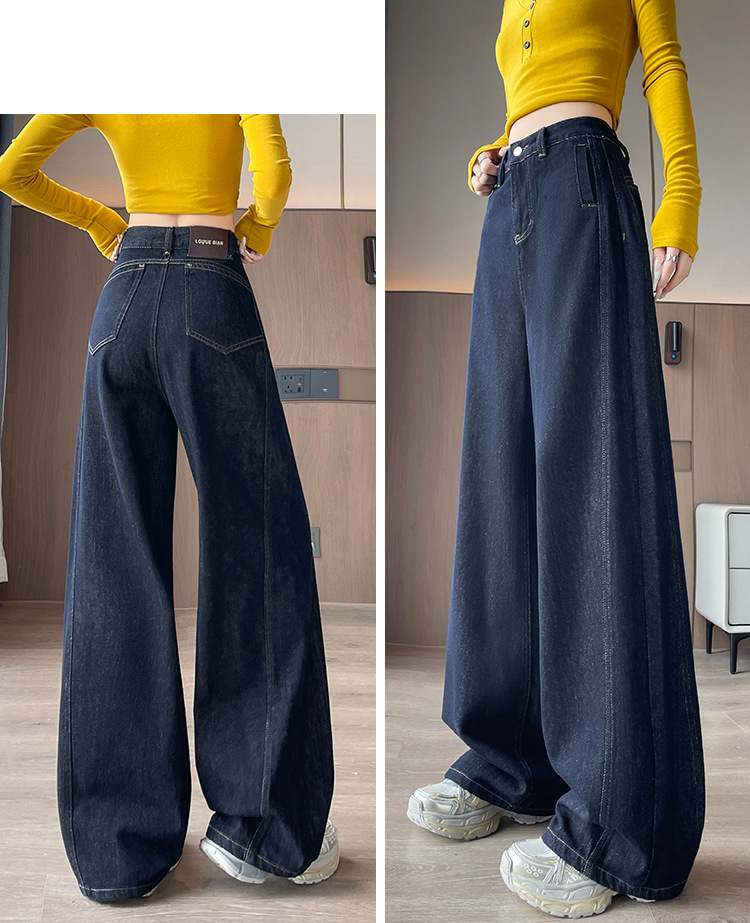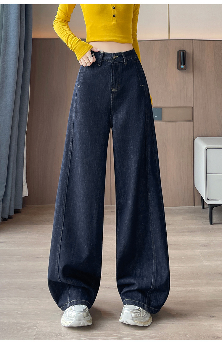デニムブルーストレートジーンズ女性の秋冬 2025 新しいハイウエストルーズ弾性フロアモップワイドレッグパンツ女性の冬