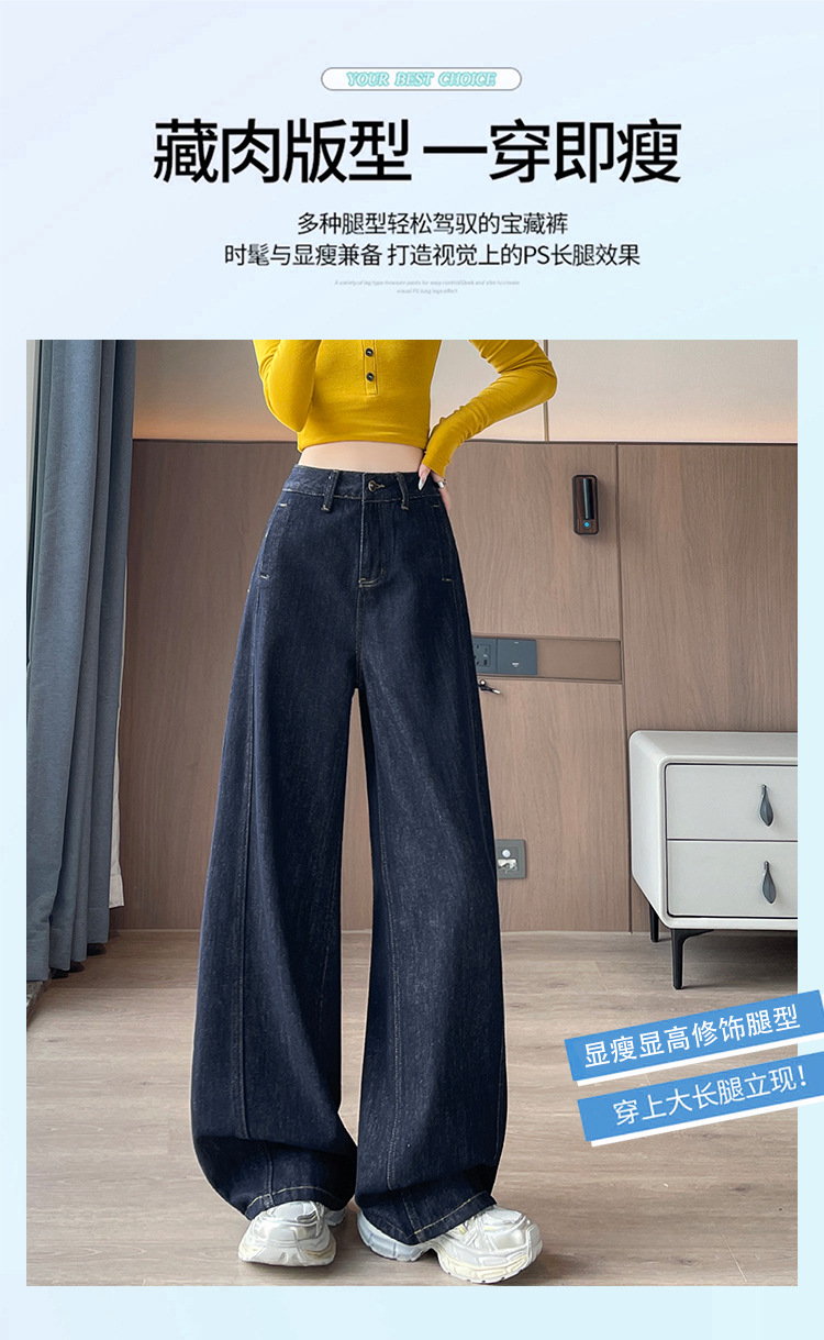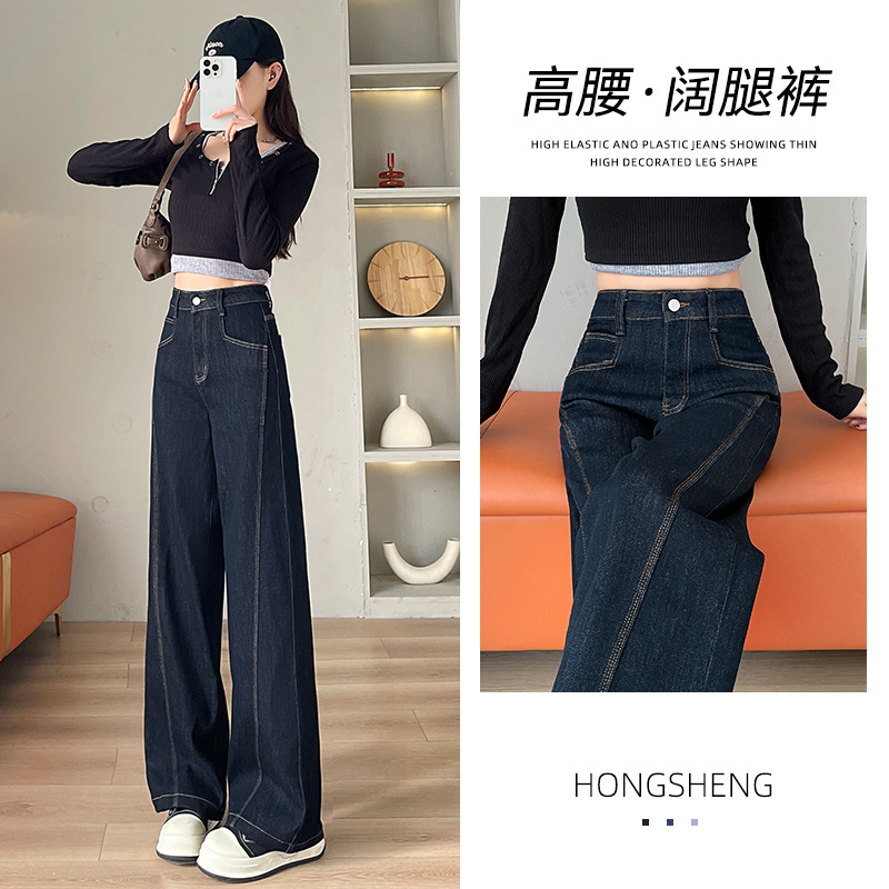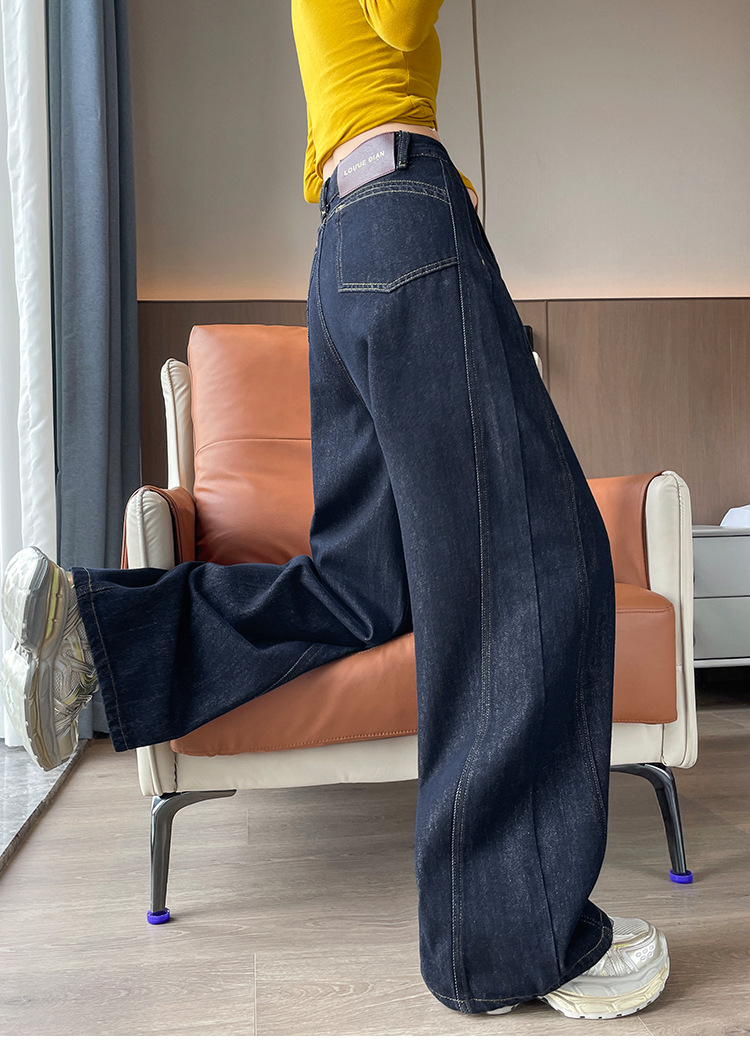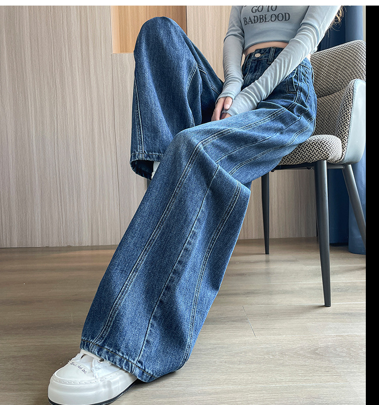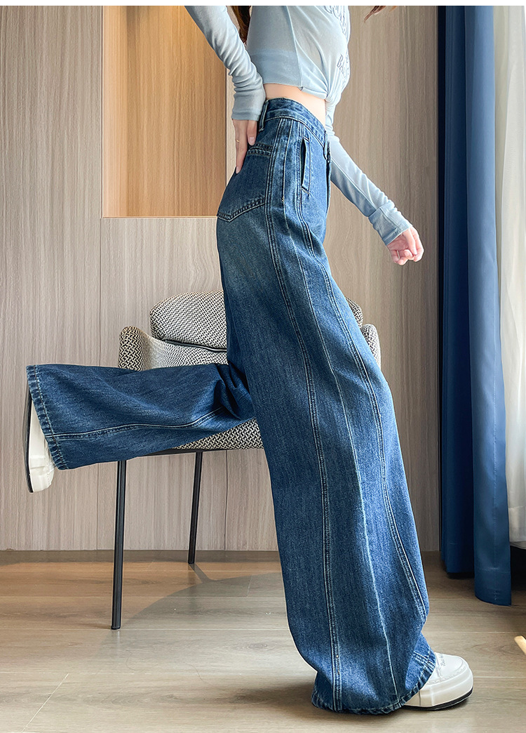 デニムブルーストレートジーンズ女性の秋冬 2025 新しいハイウエストルーズ弾性フロアモップワイドレッグパンツ女性の冬