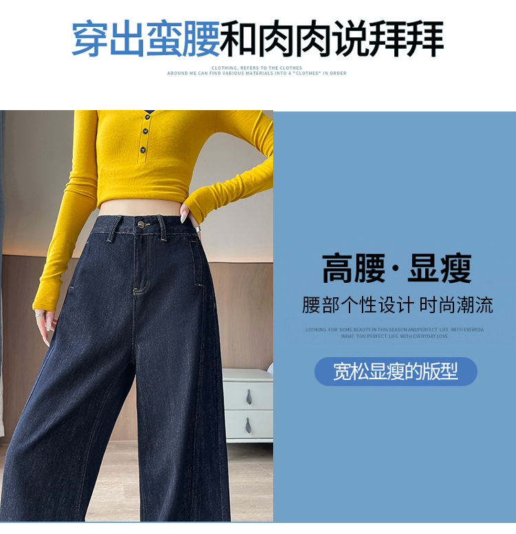 レトロブルーワイドレッグジーンズ女性のための秋冬 2025 新しいハイウエストルーズ梨型ボディ小トランペットパンツ