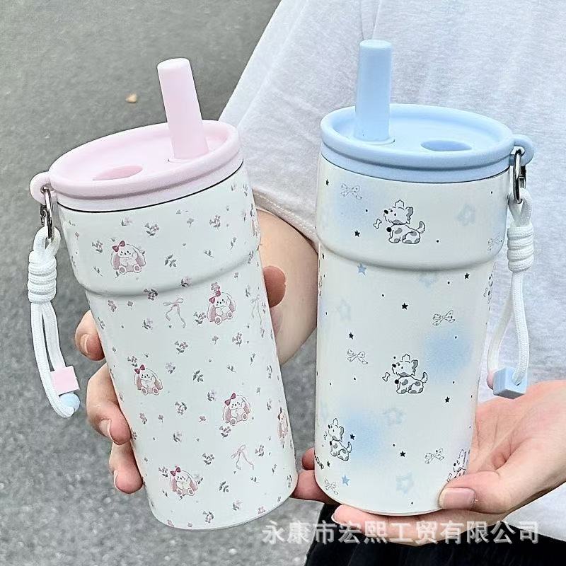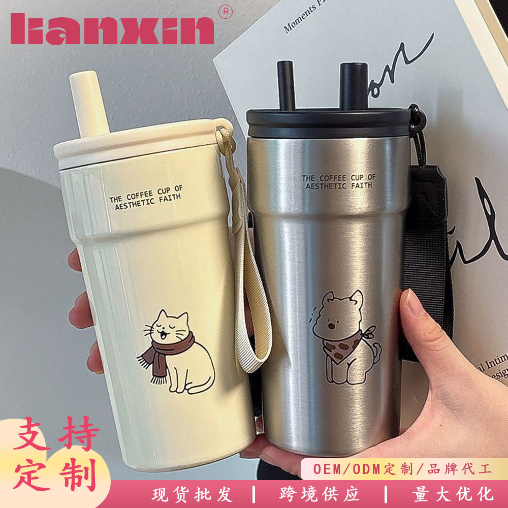 新款女生咖啡杯316不锈钢保温水杯大容量学生便携高颜值吸管水杯