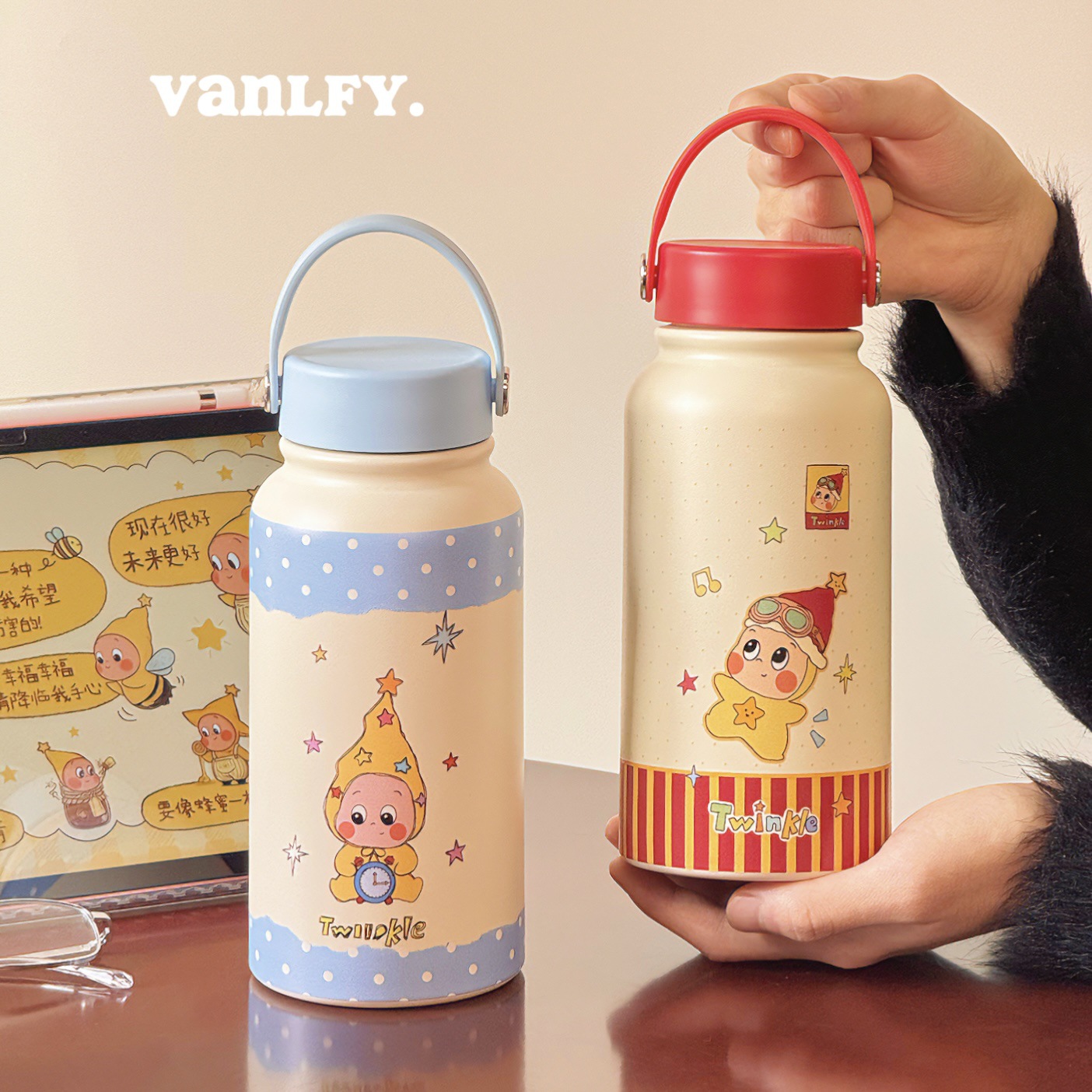2025新款星星卡通高颜值保温杯大容量可爱便携提手学生水杯
