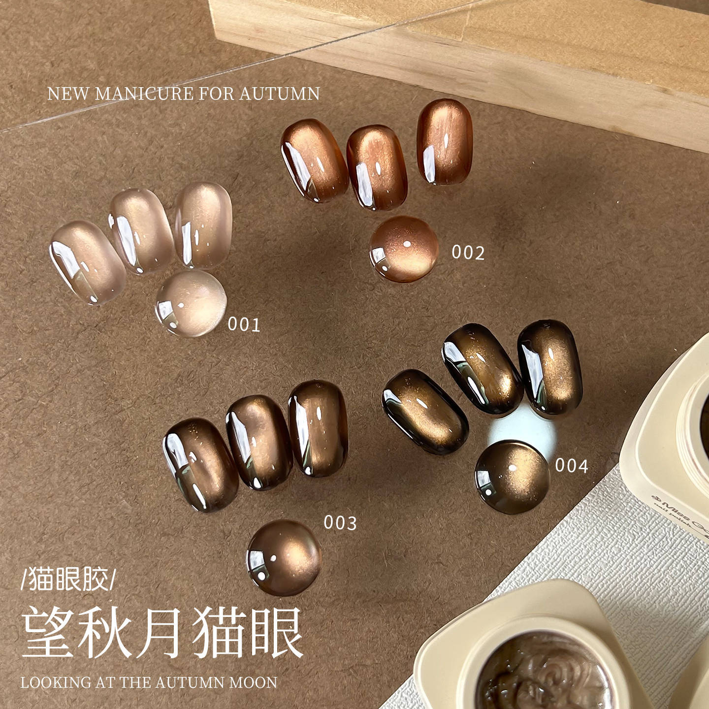 望秋月棕色金光猫眼指甲油胶2025年新款显白焦糖美拉德玻璃珠美甲