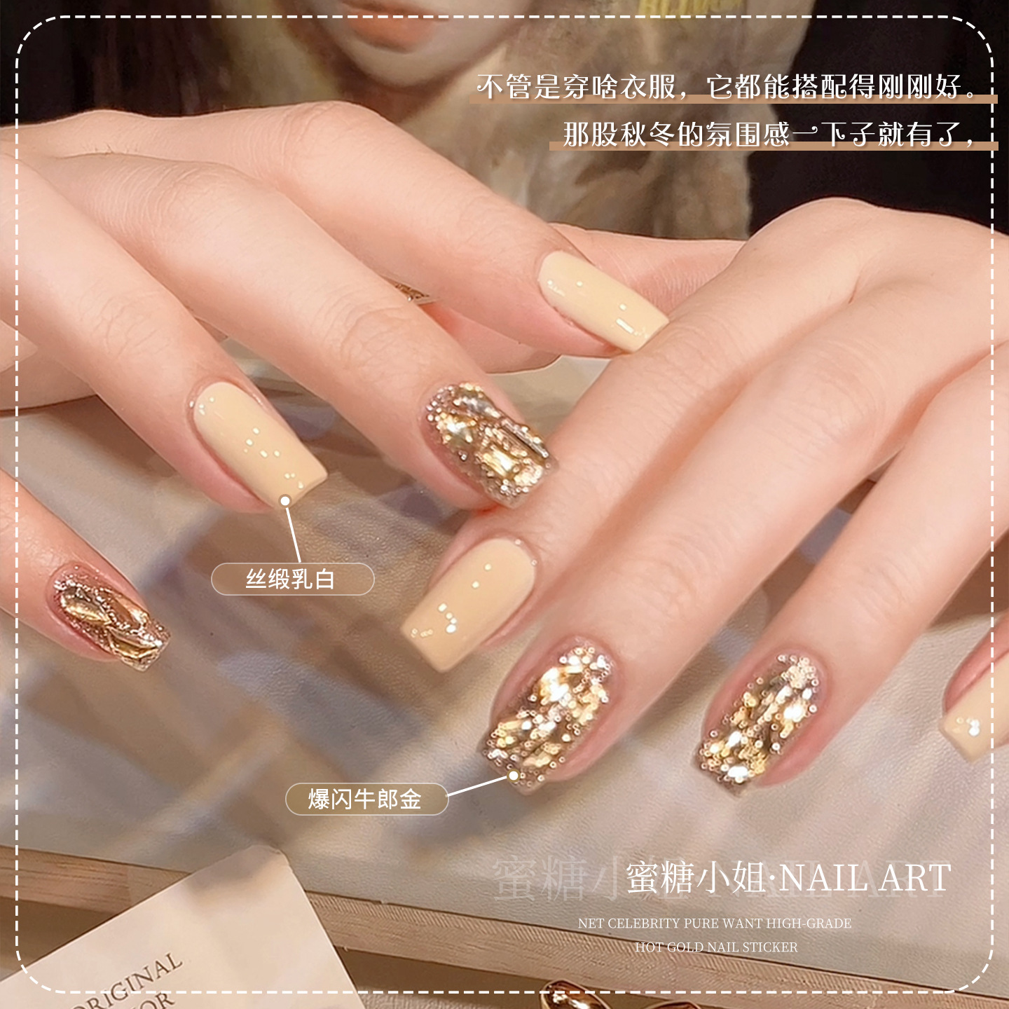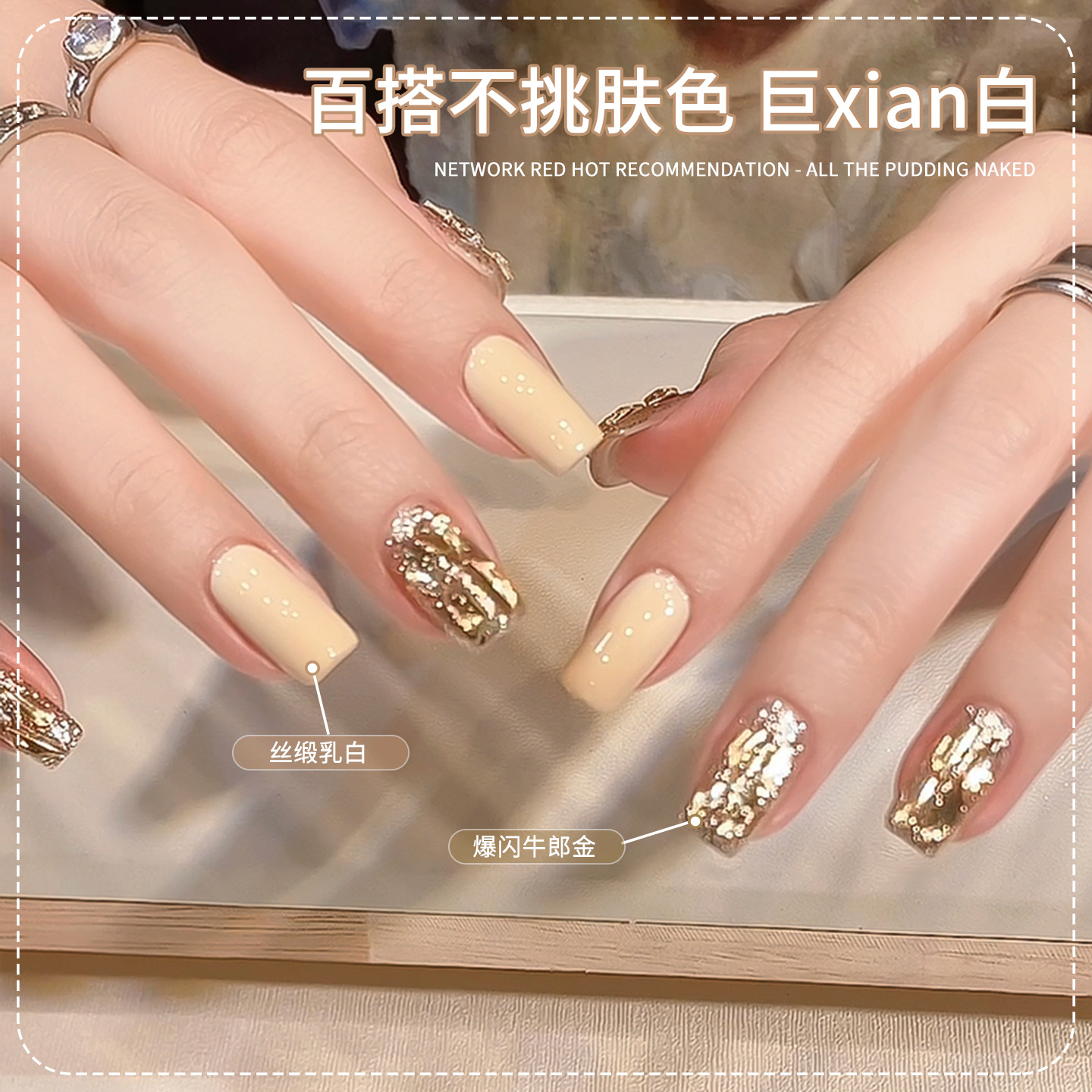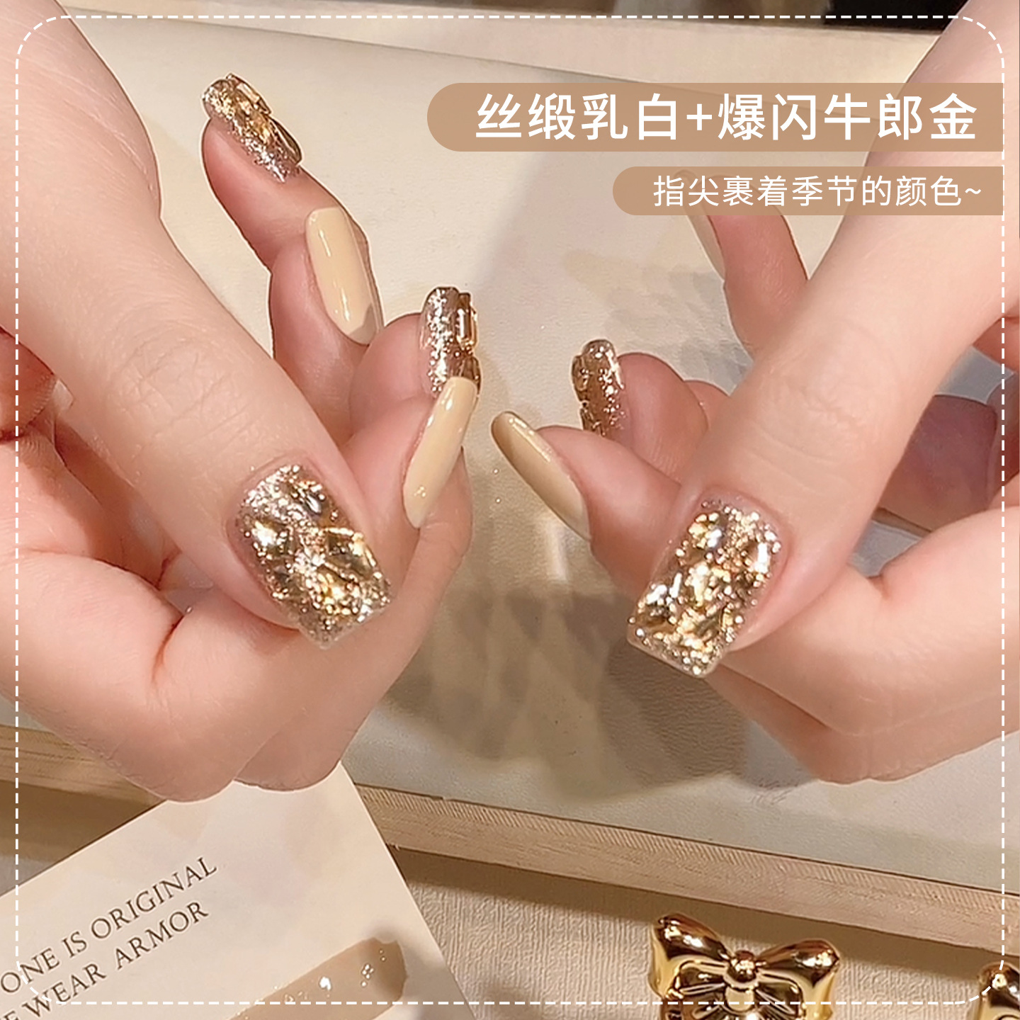 初秋美甲丝缎乳白爆闪牛郎金指甲油胶2025年新款显白流行美甲组合