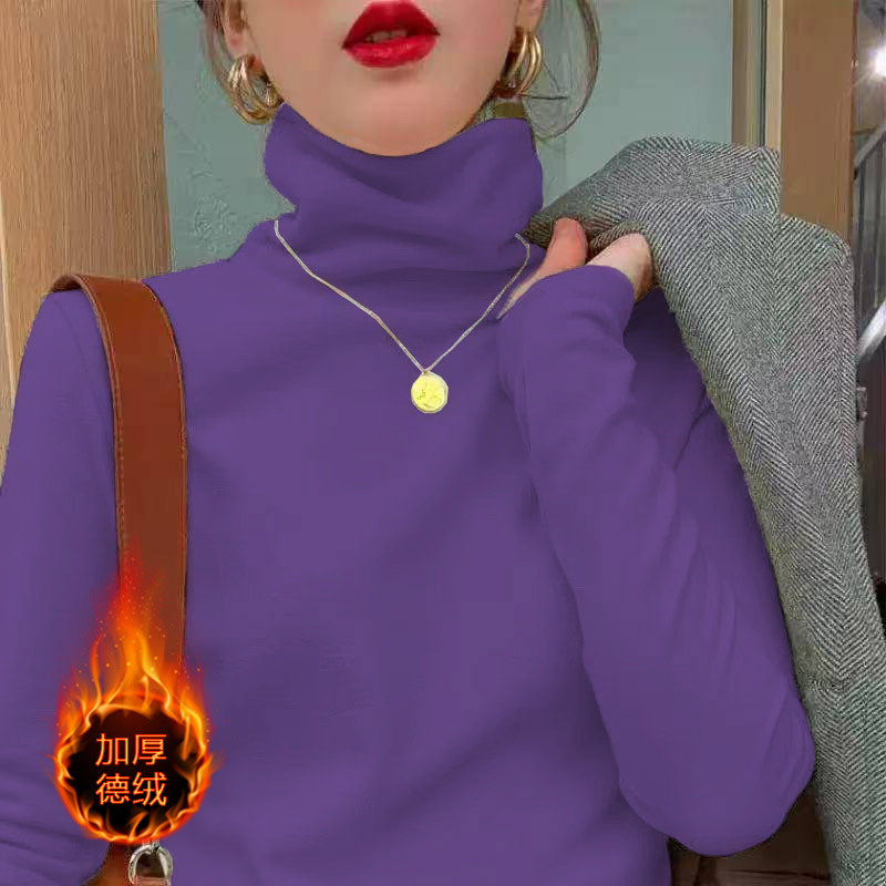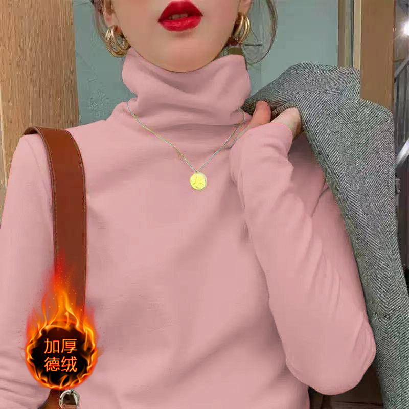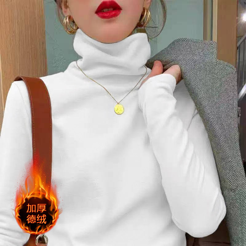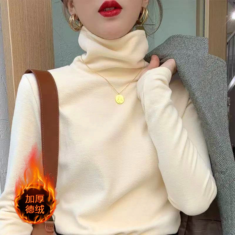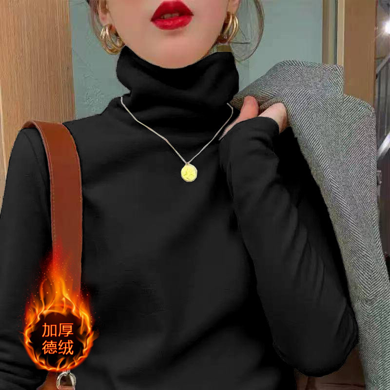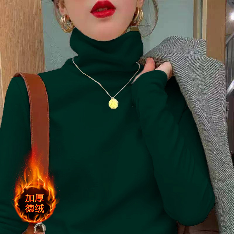 高领德绒打底衫女加绒加厚秋冬季保暖内搭修身洋气上衣长袖T恤女