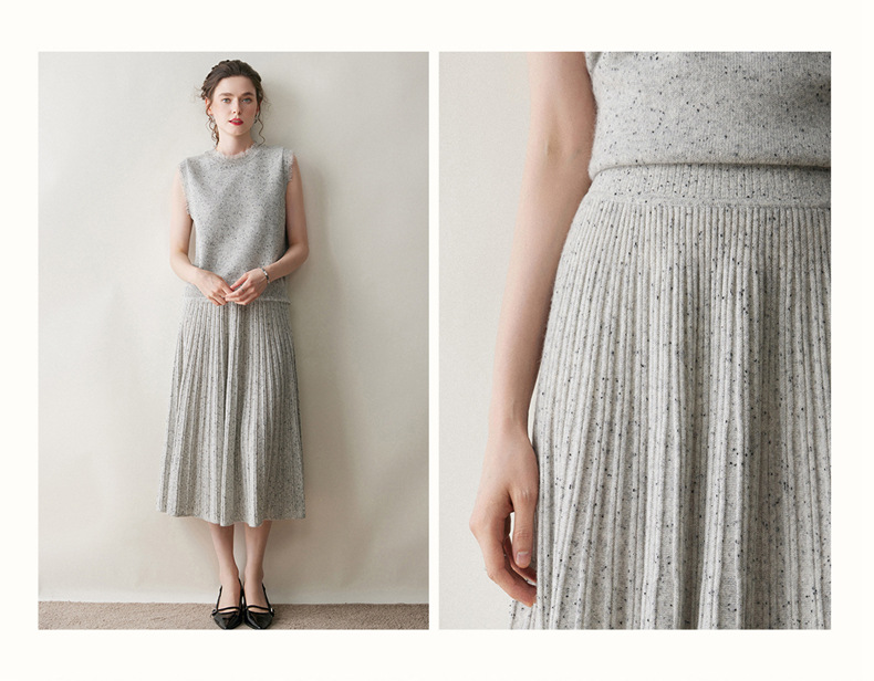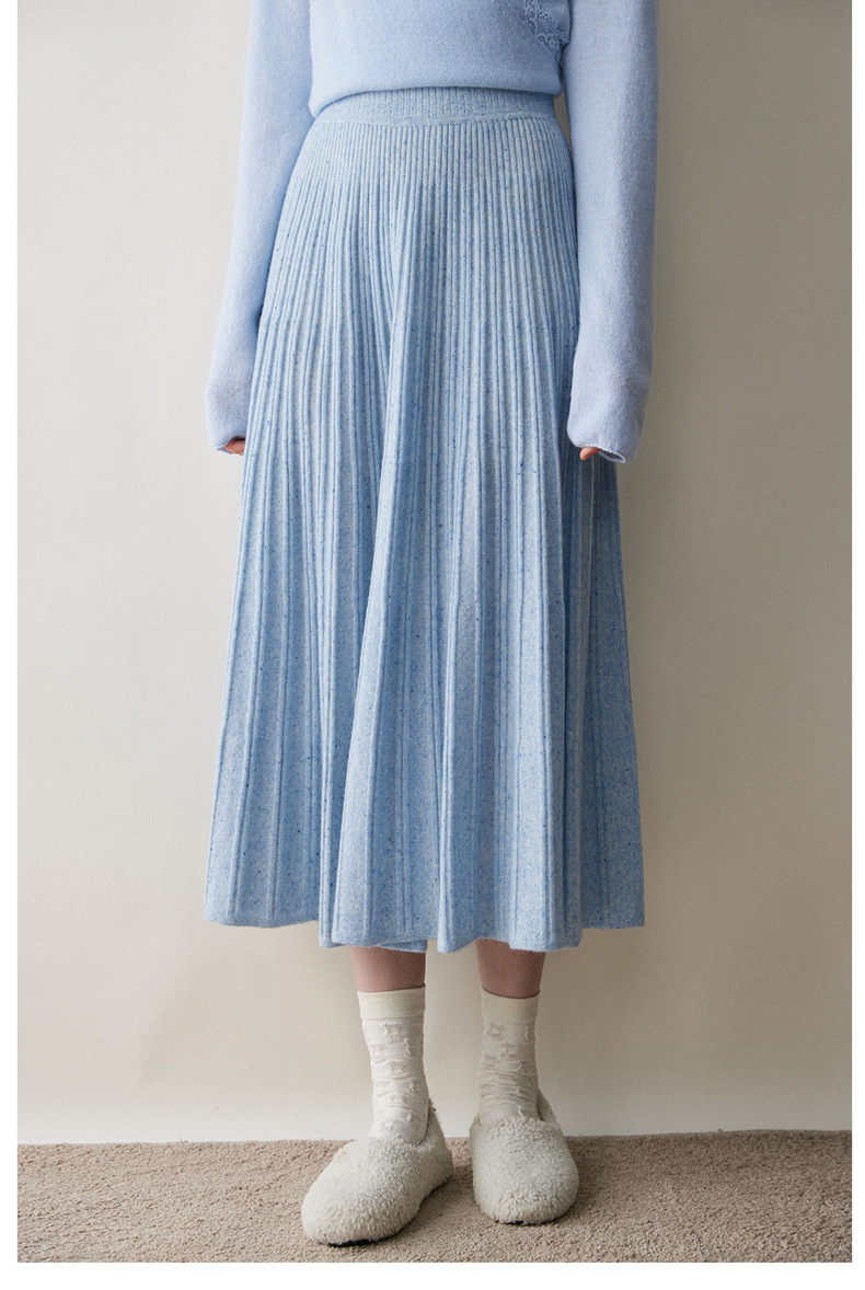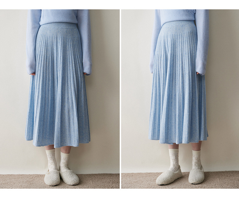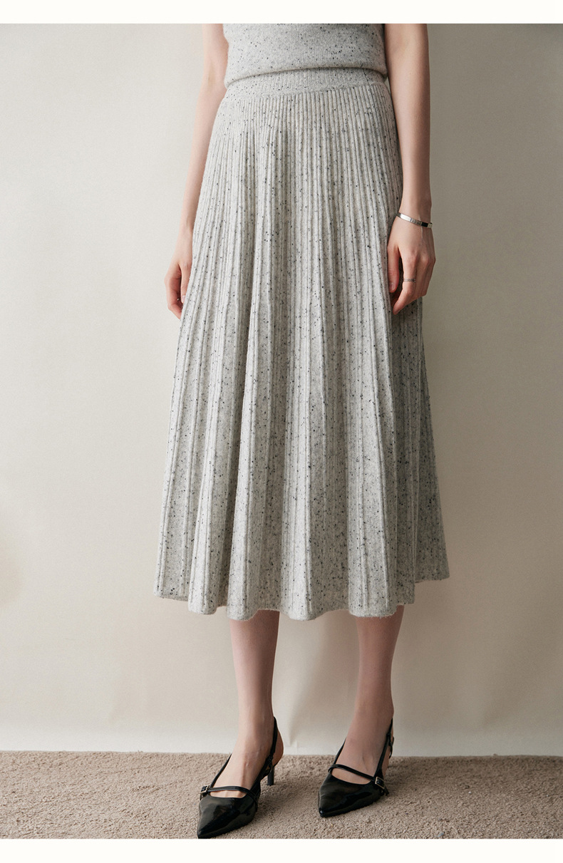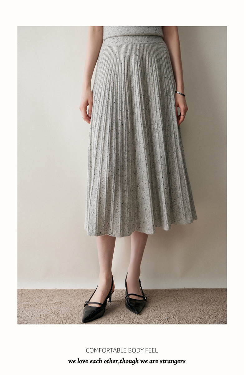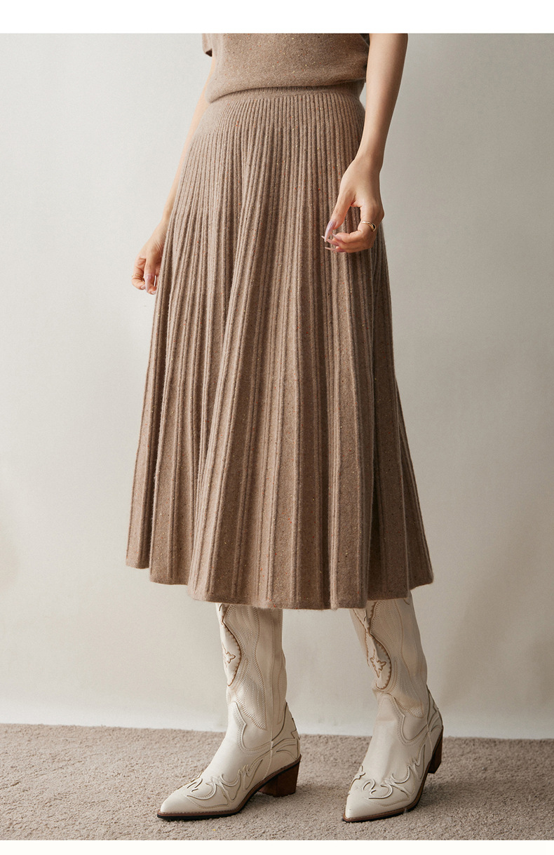 2025秋冬新款女士彩点山羊绒针织中长款半身裙高腰宽松坑条百褶裙