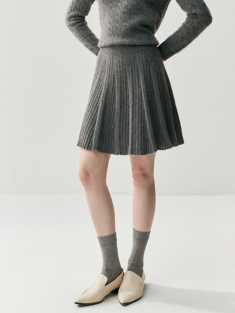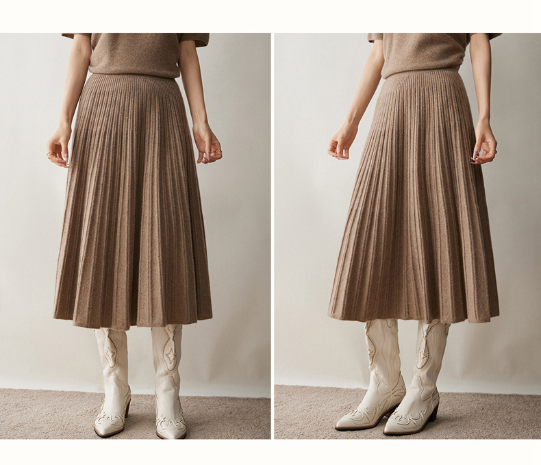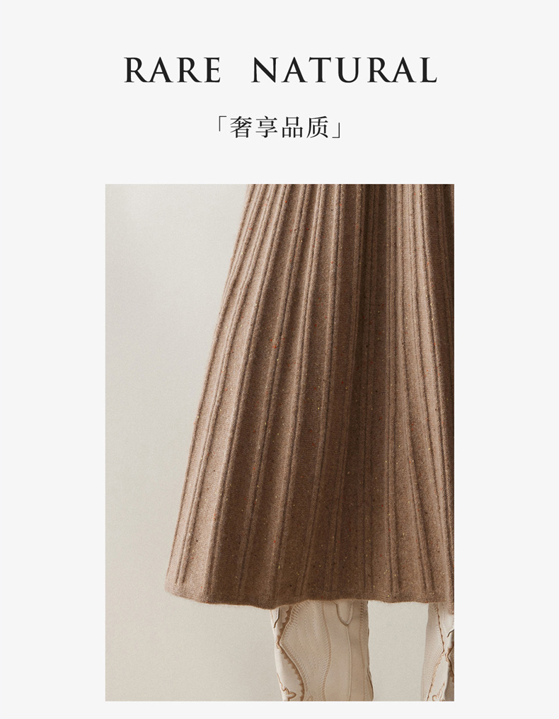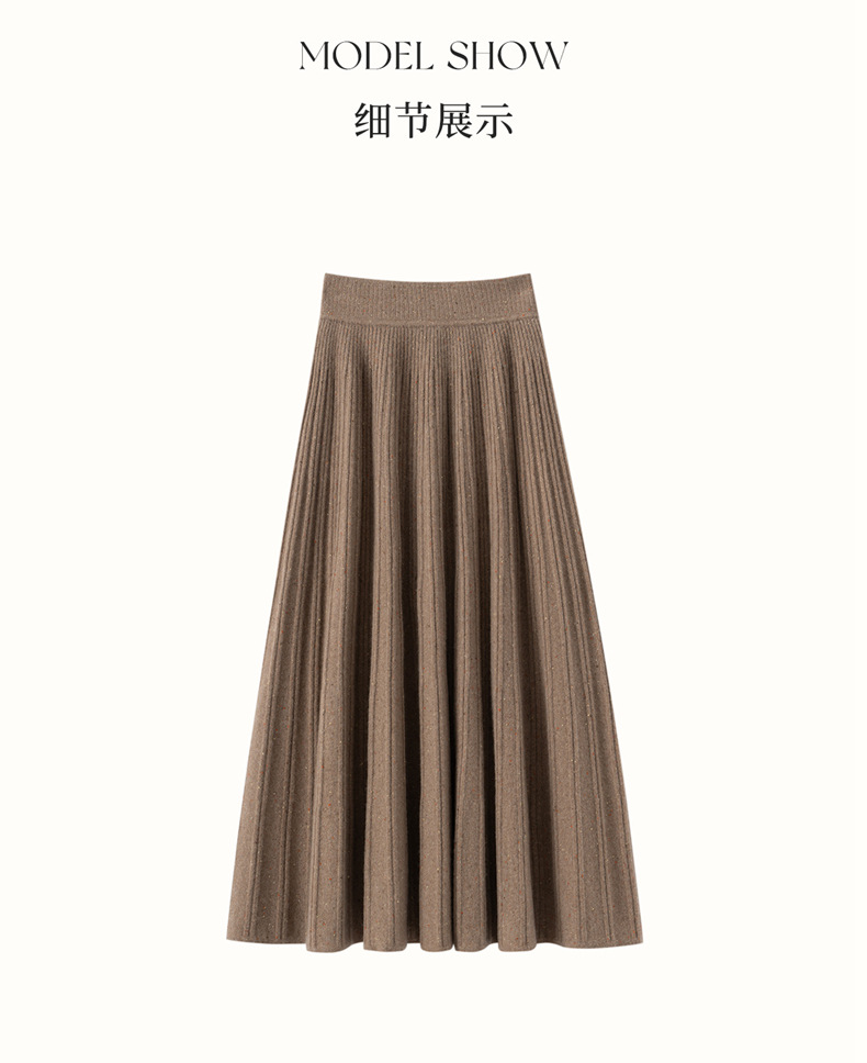 2025秋冬新款纯色女山羊绒针织半身裙伞裙抽条设计简约百搭保暖