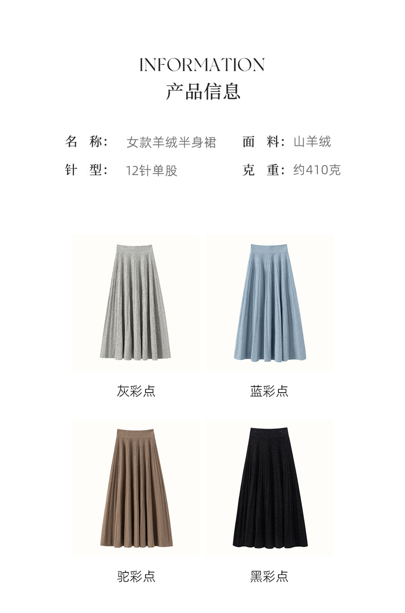 2025秋冬新款纯色女山羊绒针织半身裙精纺高腰伞裙宽松显瘦百搭