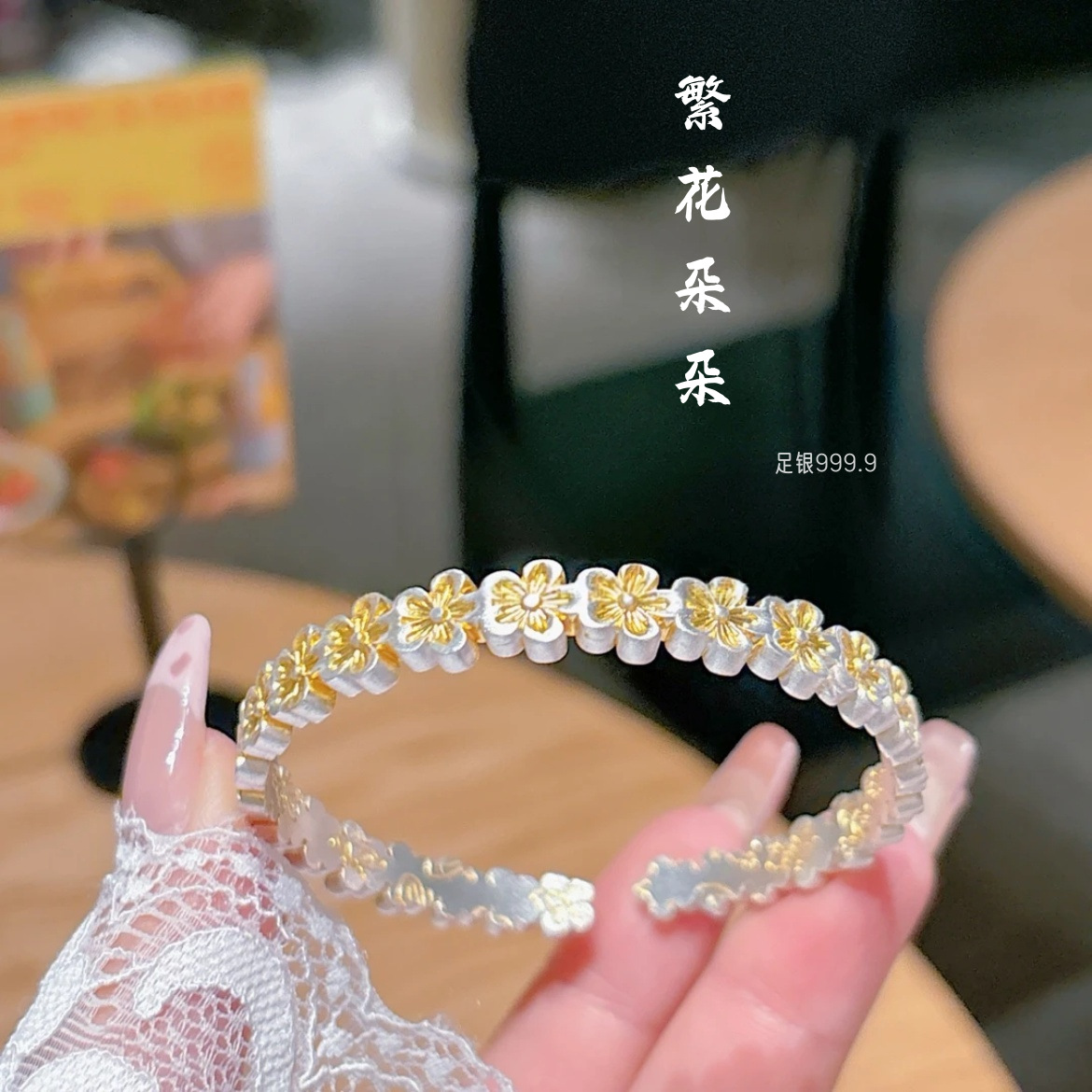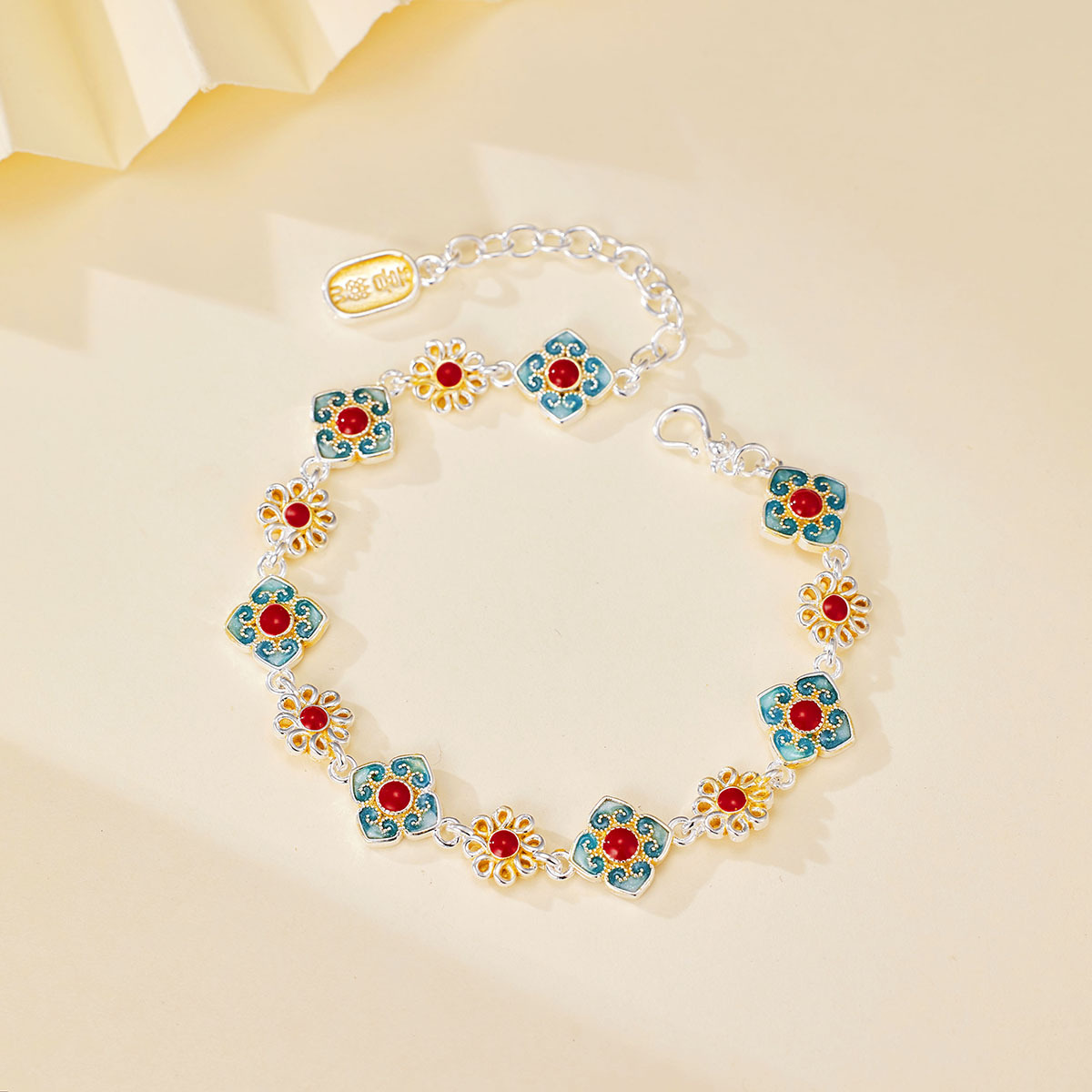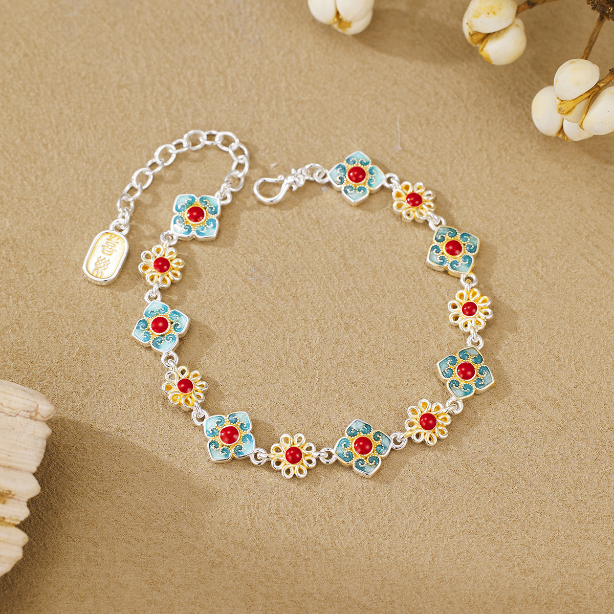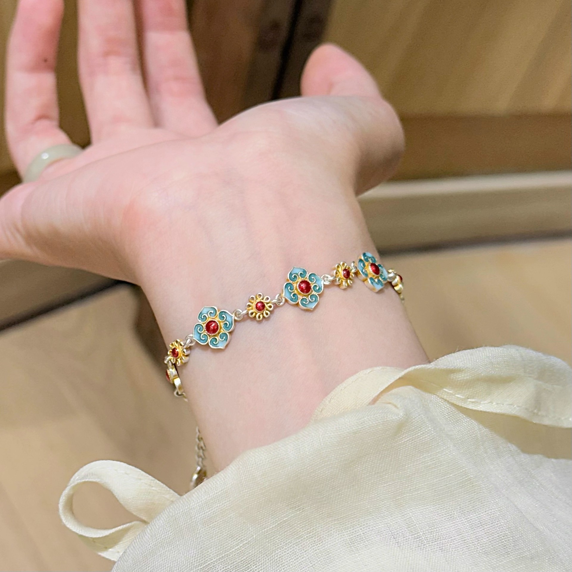 Douyin シルバーメッキエナメルゴールドフラワーライト高級新しい中国風レトロ絶妙な手作りエナメルシルバーブレスレット