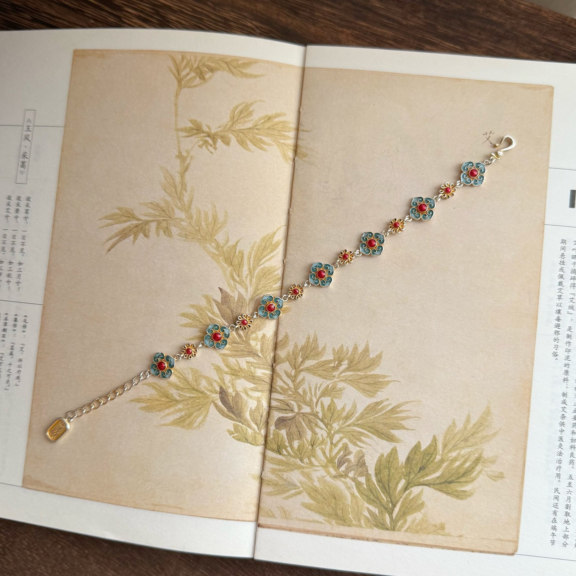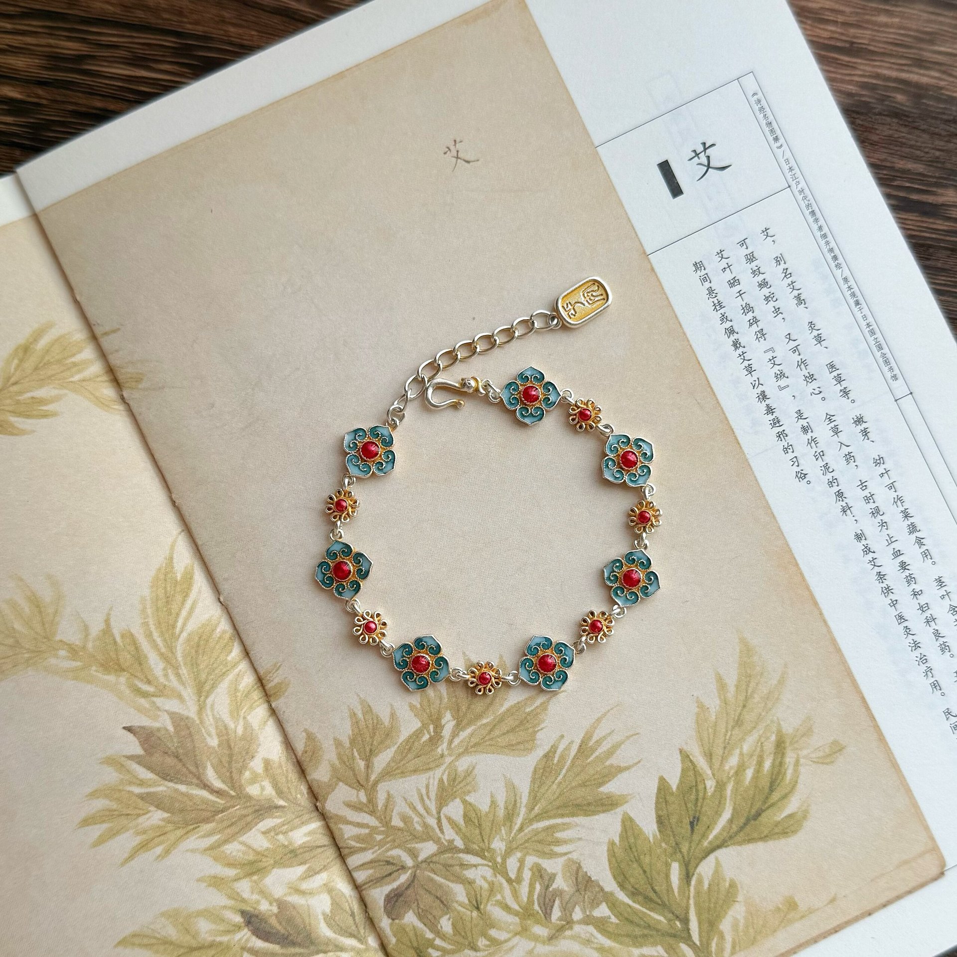 新中式景泰蓝描金珐琅花在野手链四叶草古风精致百搭手链送礼物