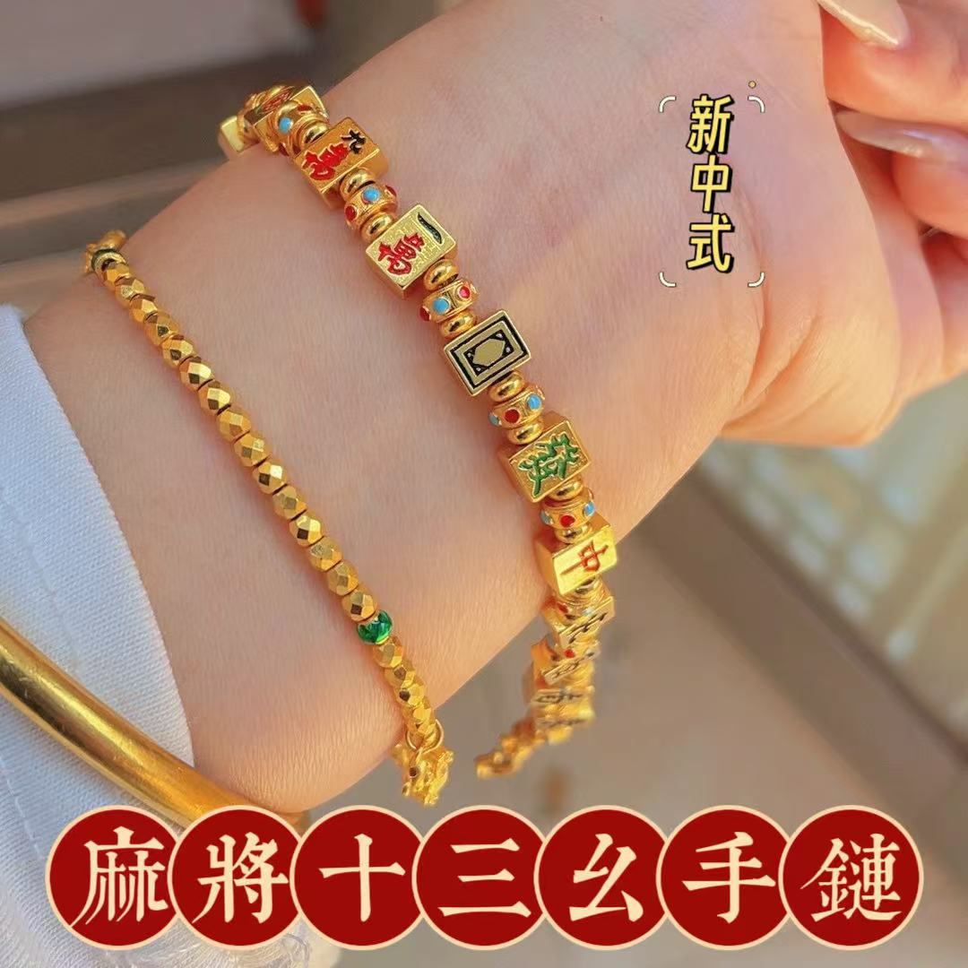 十三幺中財南麻雀ブレスレット、幸運と富を呼ぶDIY金メッキブレスレット、干支年ギフト、幸運のサイコロ