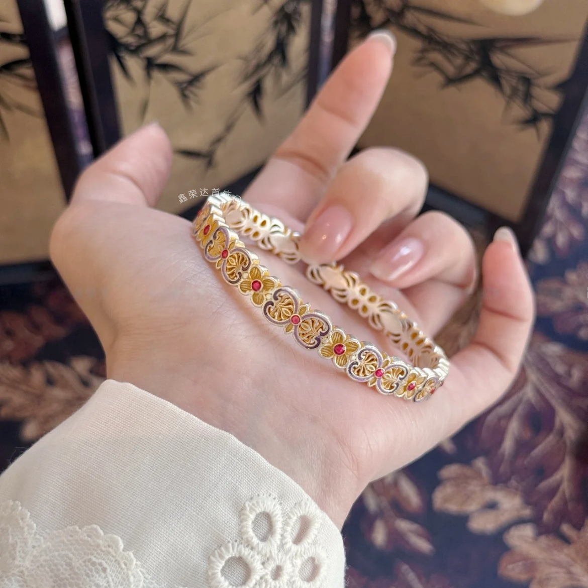 正宗足银9999描金珐琅如意手链女复古宫廷风小众设计女友国风礼物