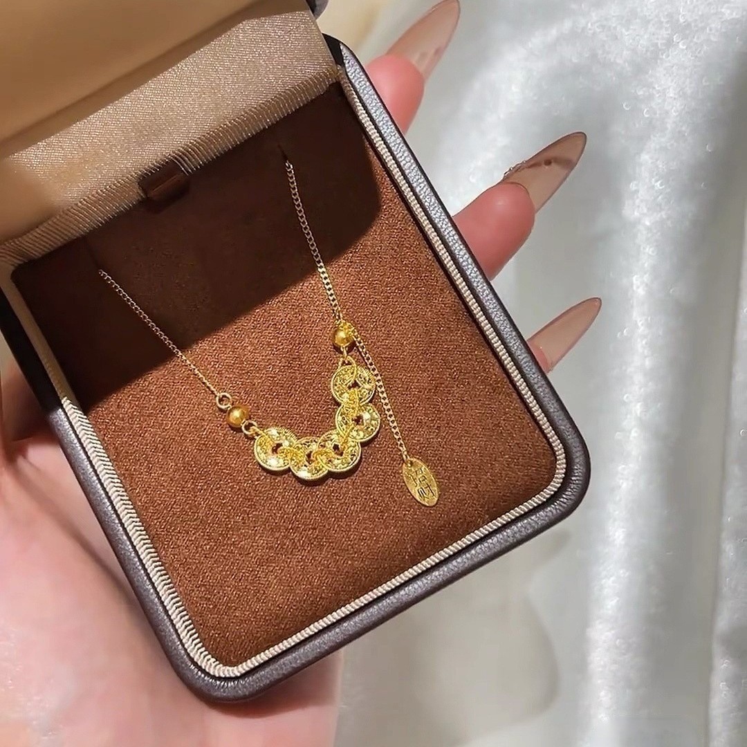 砂金砕氷五帝銭ネックレスブレスレット女性用銭多多鎖骨チェーン2025年新作金メッキペンダント