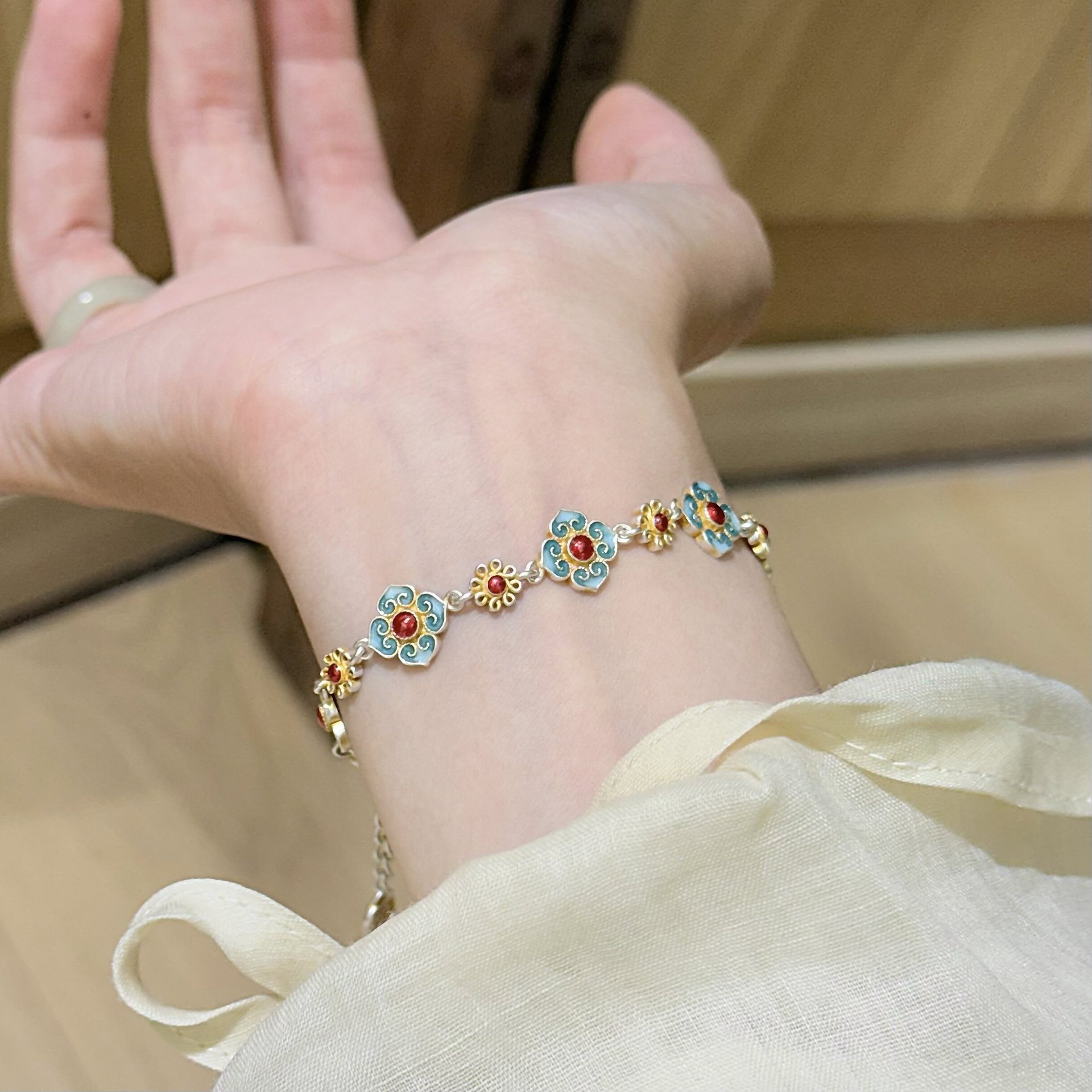「锦上添花」珐琅彩如意手链女新中式国风繁花手串新款送女友礼物