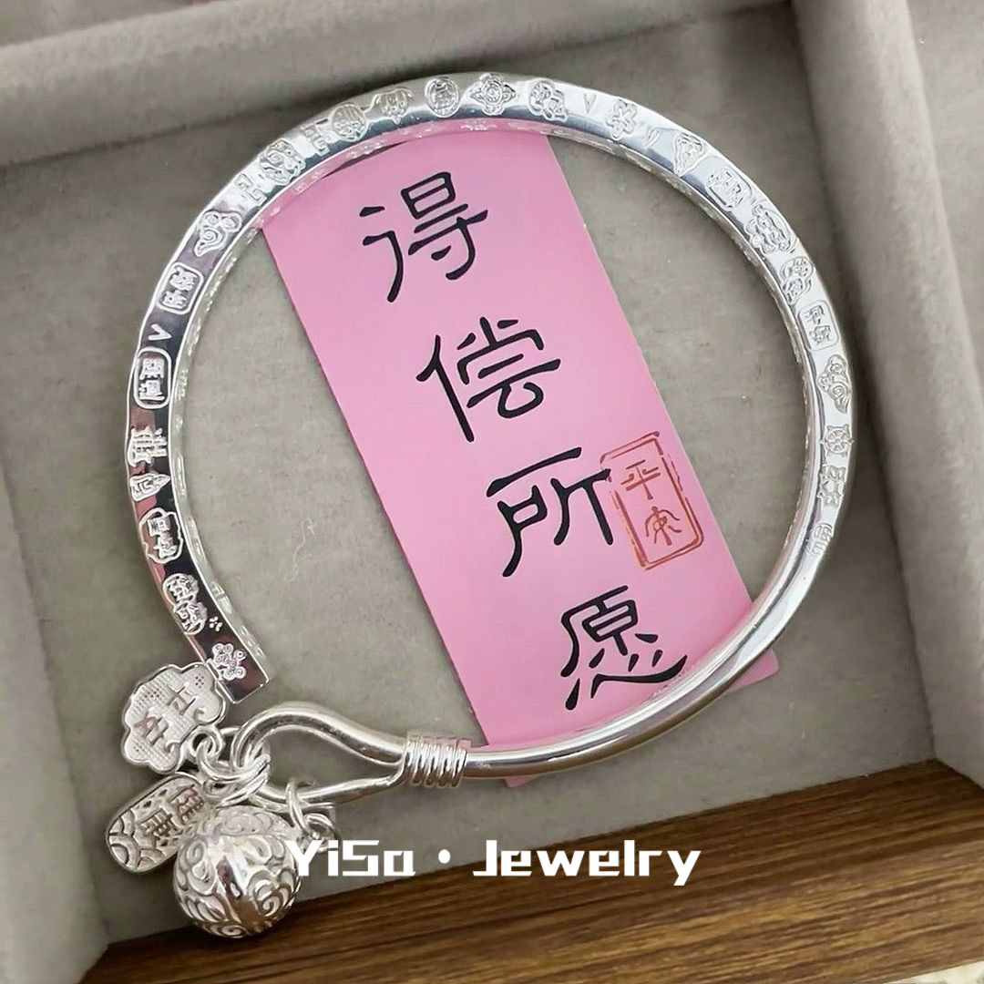 Douyin ライブブロードキャスト四方吉言宮殿ベル安全ブレスレット女性用シルバー 999 新しい中国風の古代スタイルのオープンブレスレットギフト