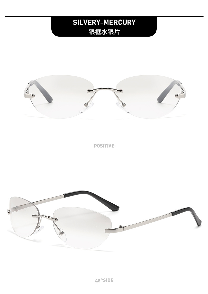 Y2K无框金属椭圆水银凹造型复古美式千禧辣妹跨境太阳眼镜女款潮