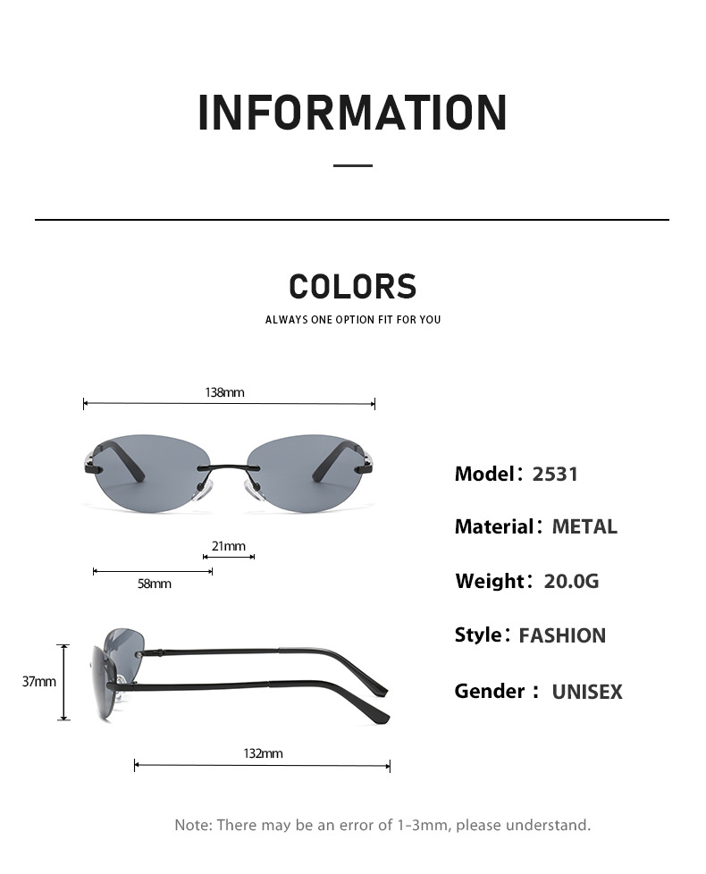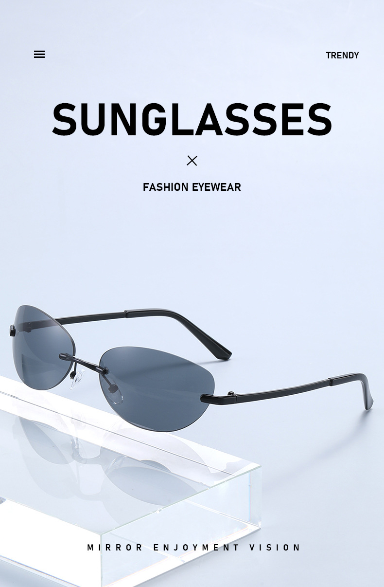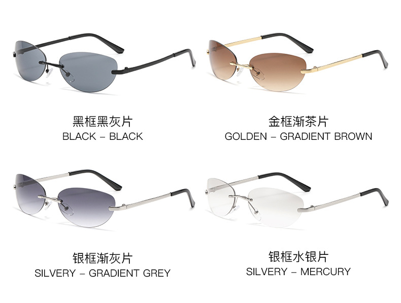 Y 2kフレームなし楕円形サングラスネット赤ミレニアムギャル同モデルサングラス男性欧米クロスボーダー女性メガネ