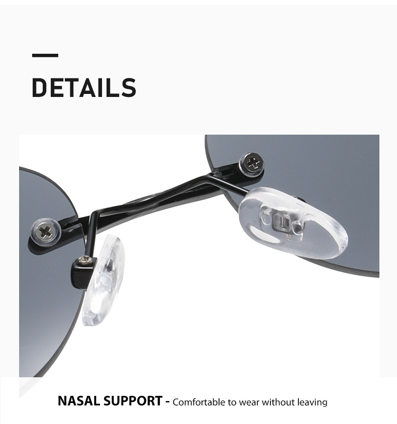 无框墨镜黑色金属镜腿深邃灰弧面镜片防紫外线摩登轻盈太阳镜眼镜