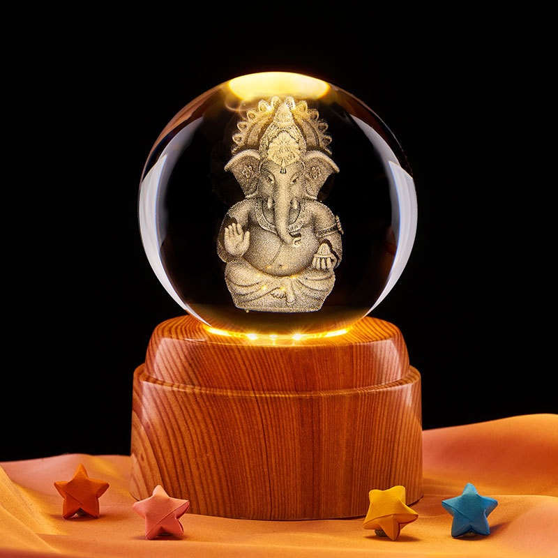 印度佛像3d旋转激光内雕水晶球卧室床头发光星空小夜灯摆件