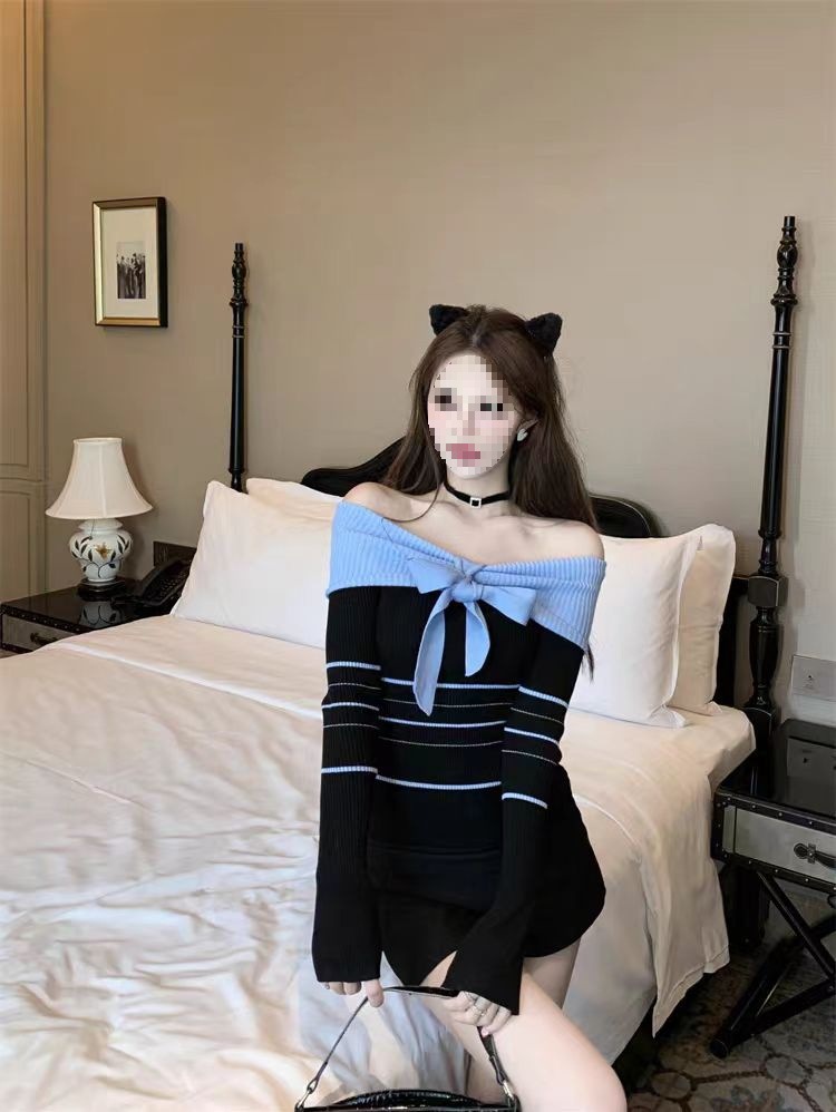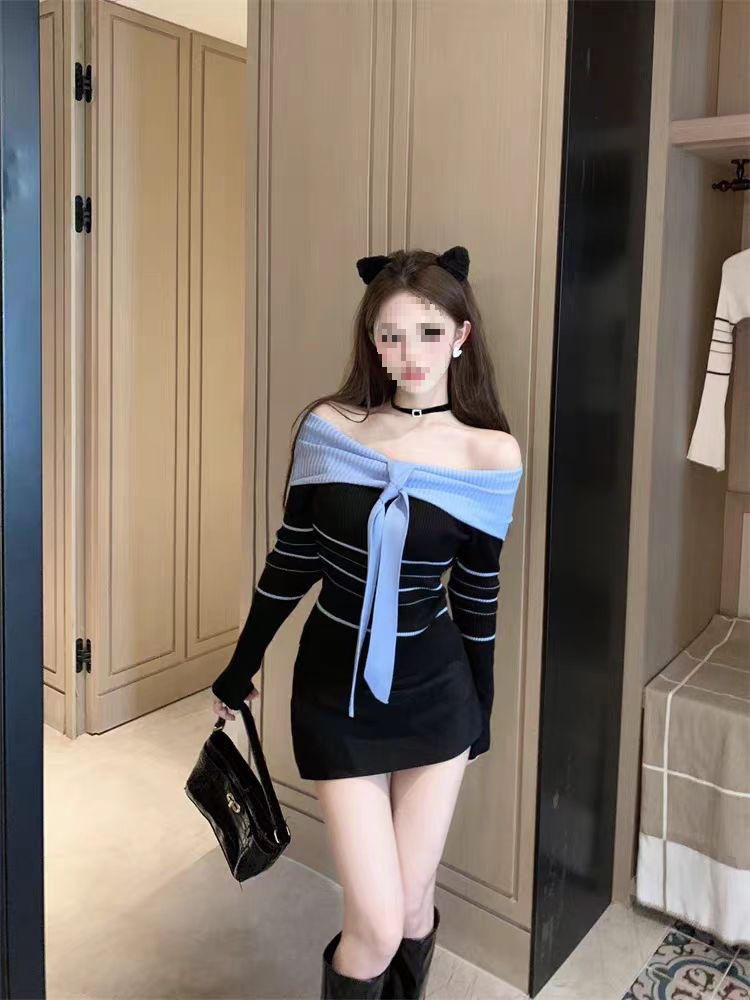 セクシーな女性向けファッション2025スクエアネックセーターワンピース女性秋冬新作ピュアセクシースタイルタイトスカートショートスカート