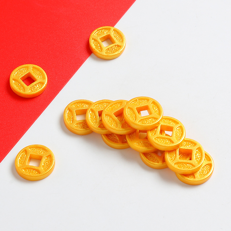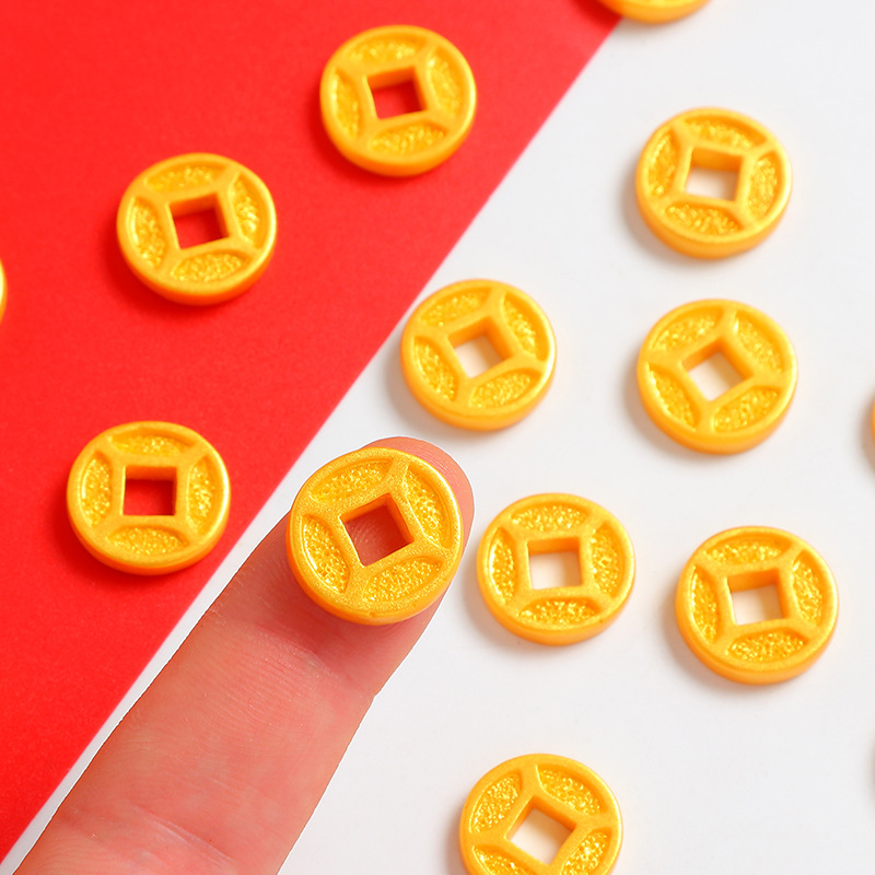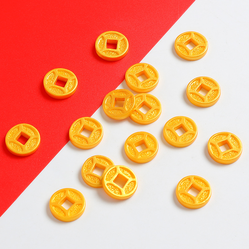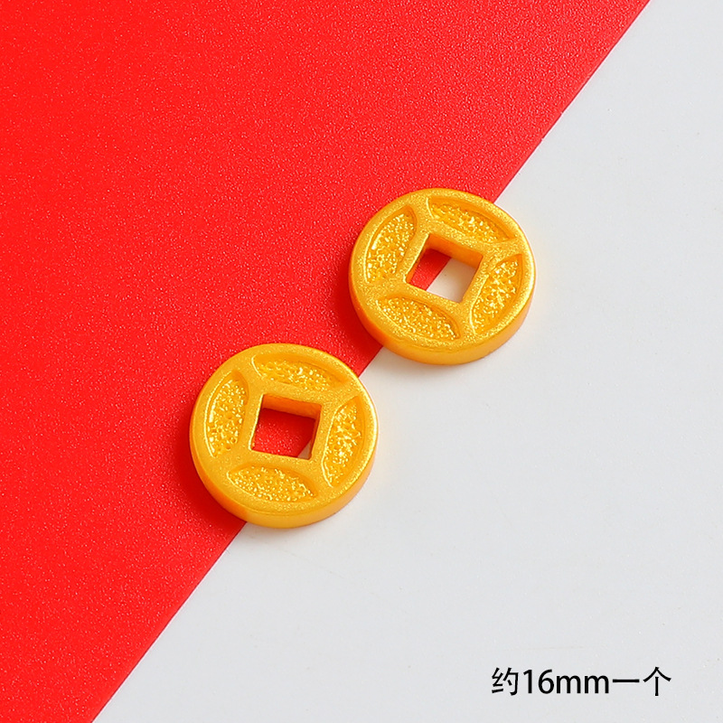 新年招财仿真铜钱隔珠树脂小配件喜庆奶油胶diy串绳饰品材料滴胶