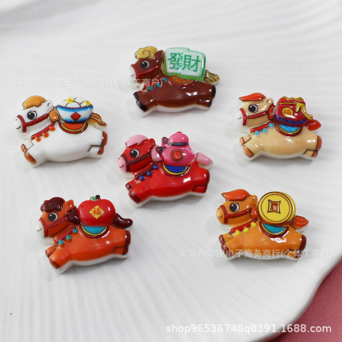 卡通马上有钱马年树脂配件 diy汽车摆件冰箱贴发夹钥匙扣配饰材料