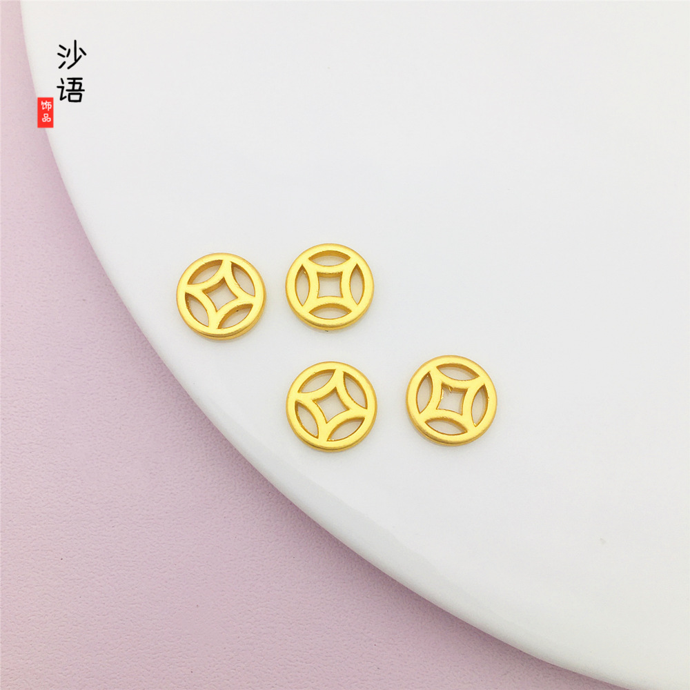 古法沙金色小铜钱隔片通孔配件diy国风手链钥匙饰品配件吊坠