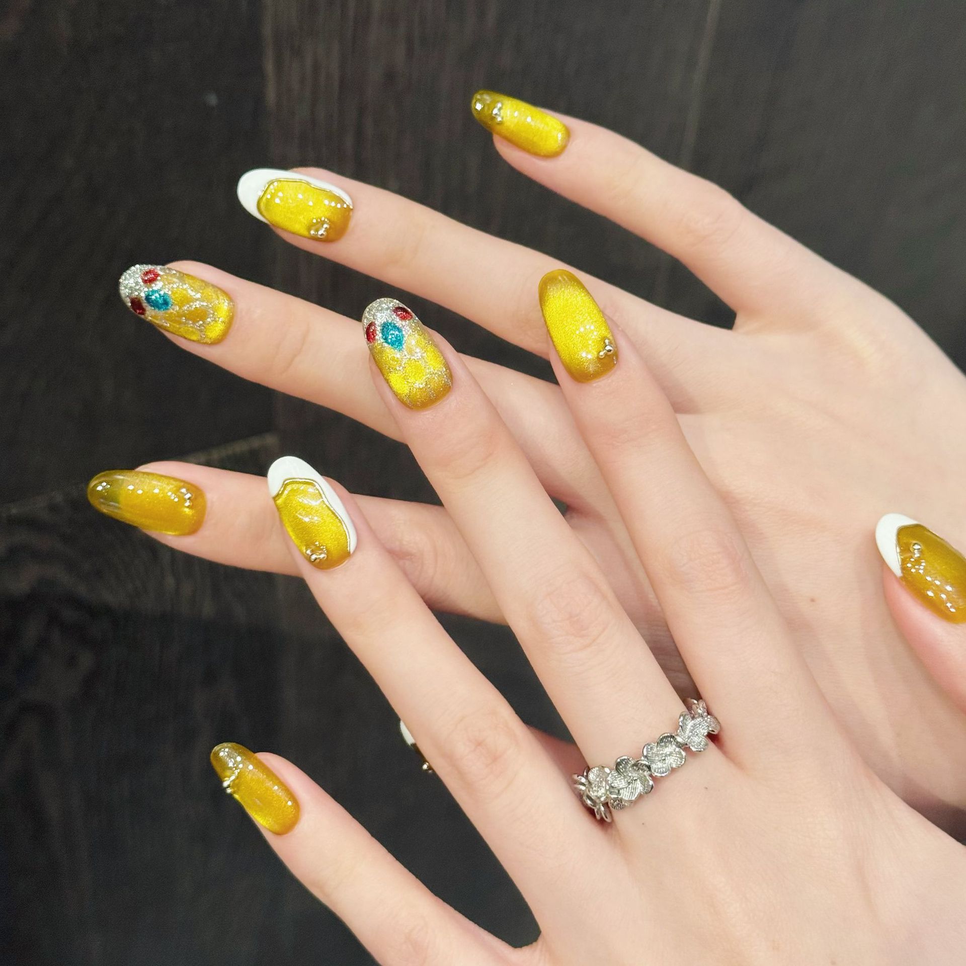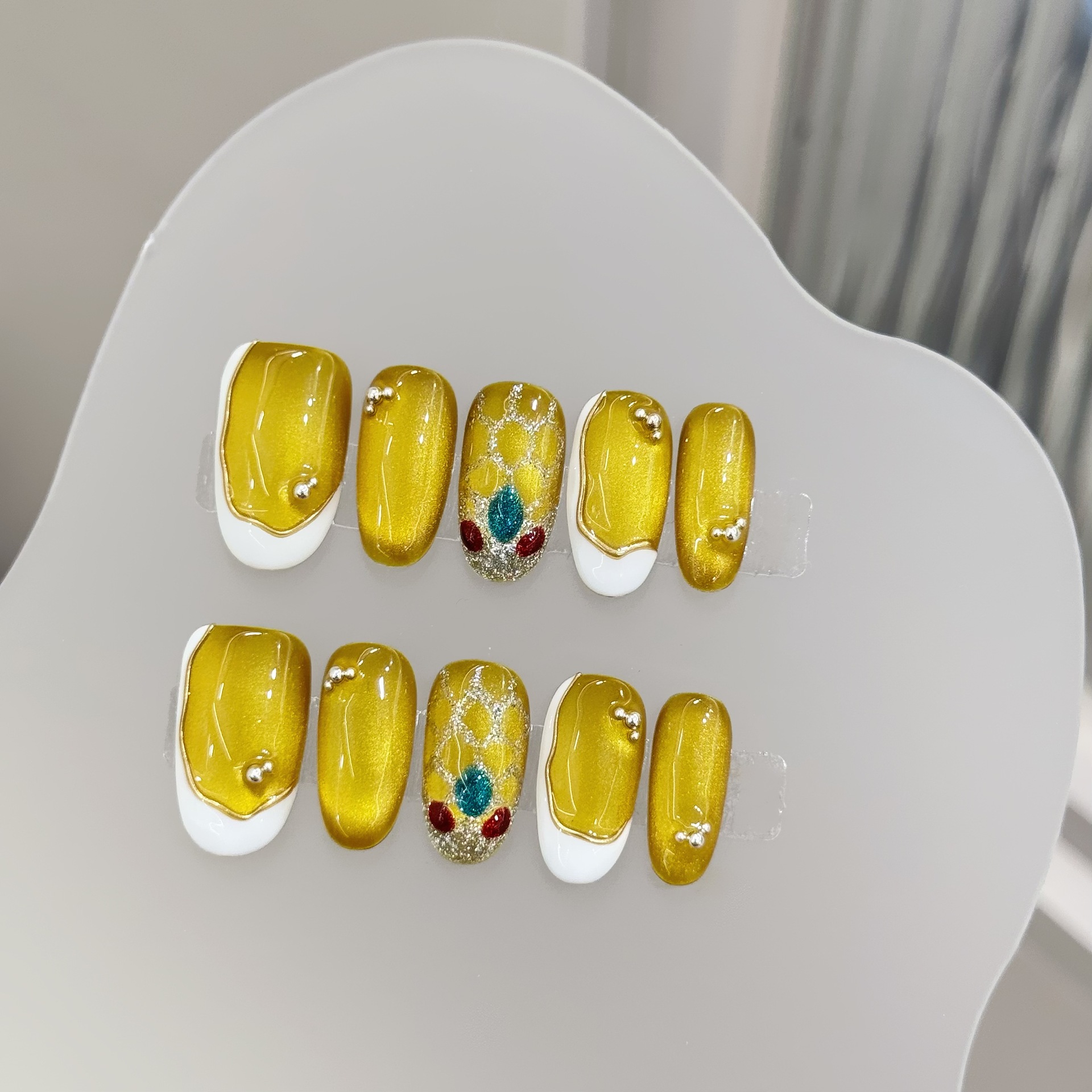 艺禾【 发财】猫眼玻璃珠纯手工穿戴甲短款豆豆甲美甲贴片假指甲