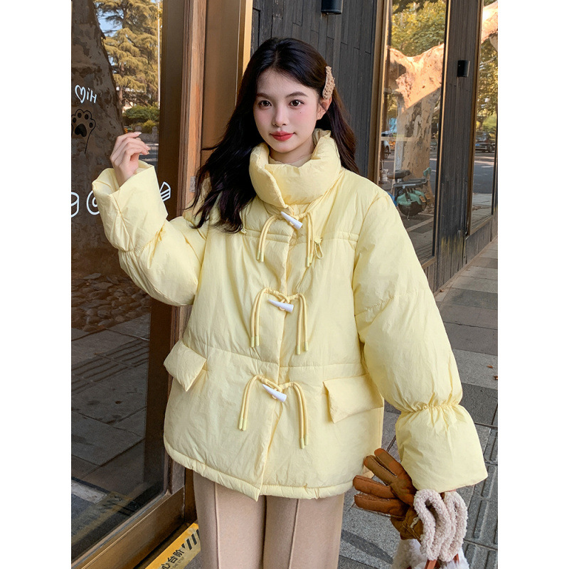 女性のためのショートダウンコットンコート 2024 新しい韓国スタイルルーズホーンボタンコットンコートパンコート秋と冬の厚いコート女性のための
