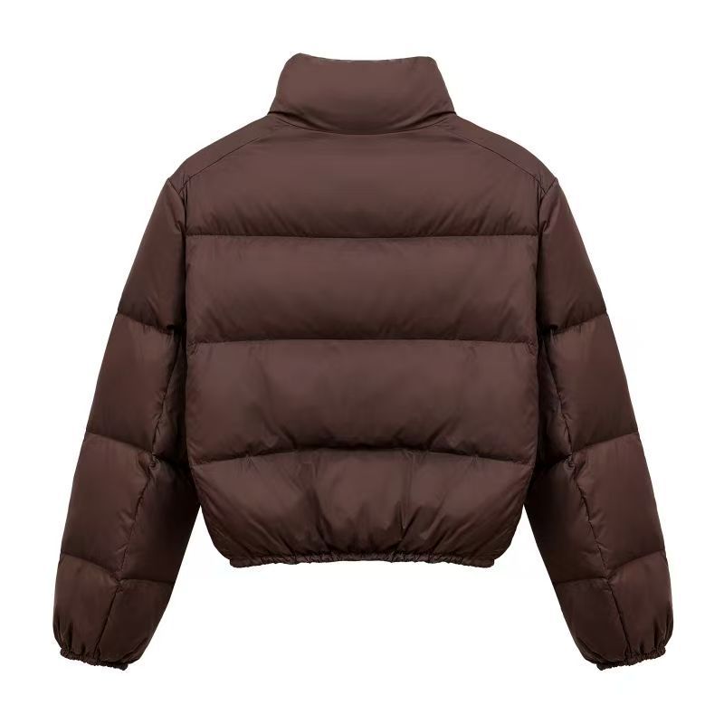 アメリカンスタイルのショート丈レディース冬用ダウンコットンジャケット、小柄な女性向け、無地、スタンドカラー、バゲット型コート、厚手で暖かい