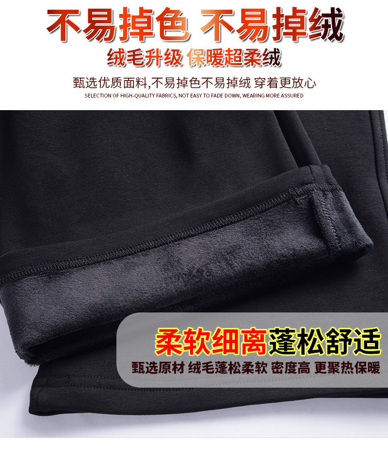 秋冬季中老年爸爸加绒裤子高腰深裆宽松直筒加厚保暖男裤外穿棉裤