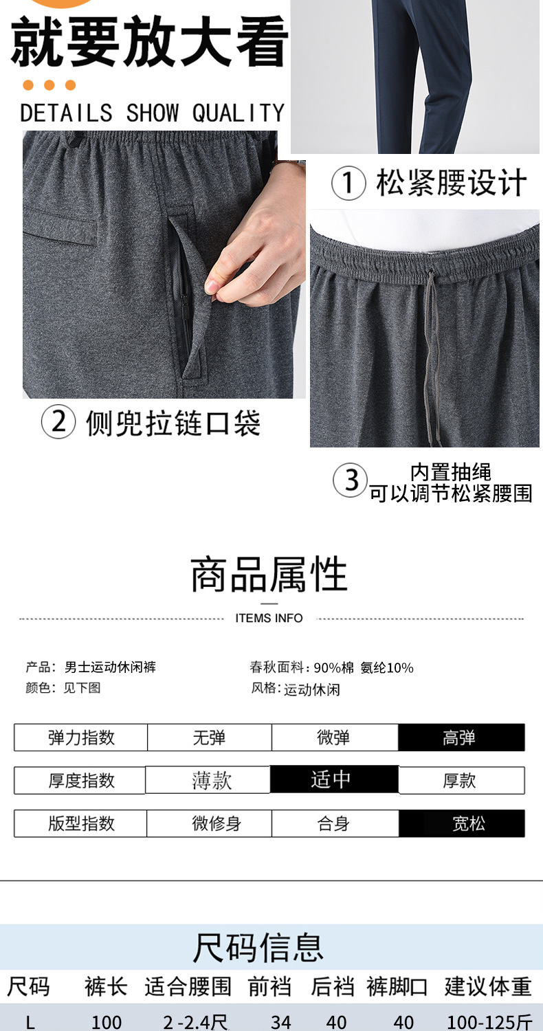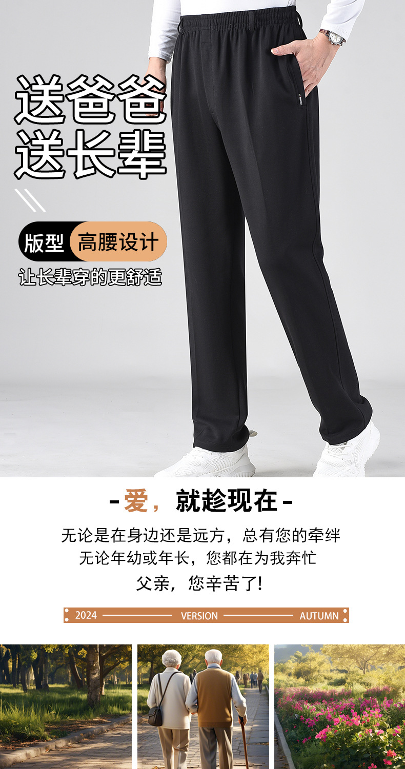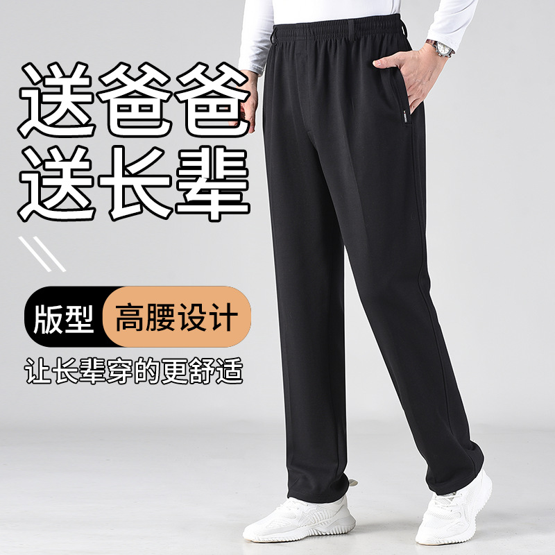 純綿スポーツパンツ男性春秋ゆるい老人お父さんズボン夏中高年男性カジュアル男性ズボン