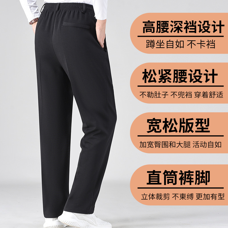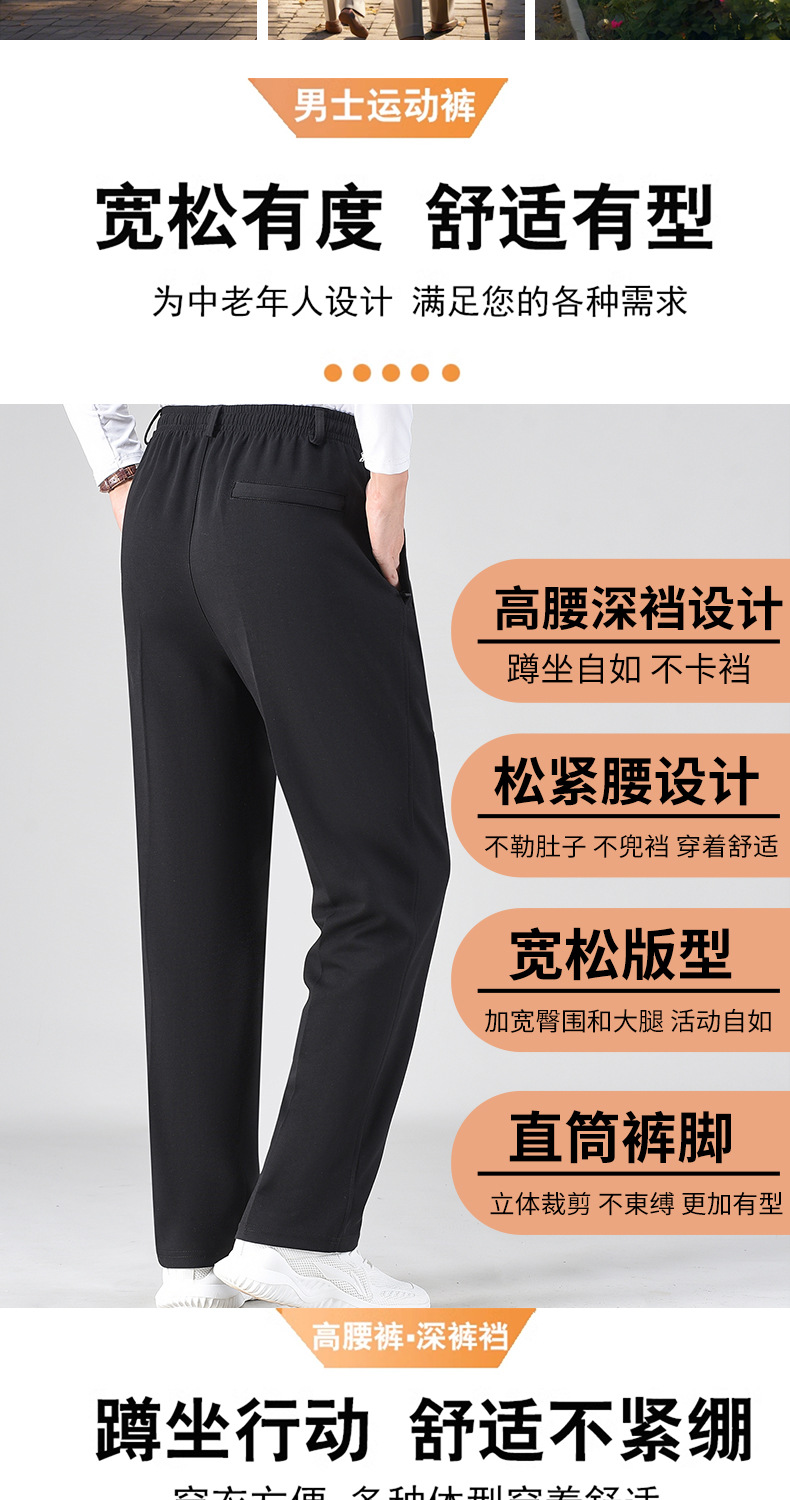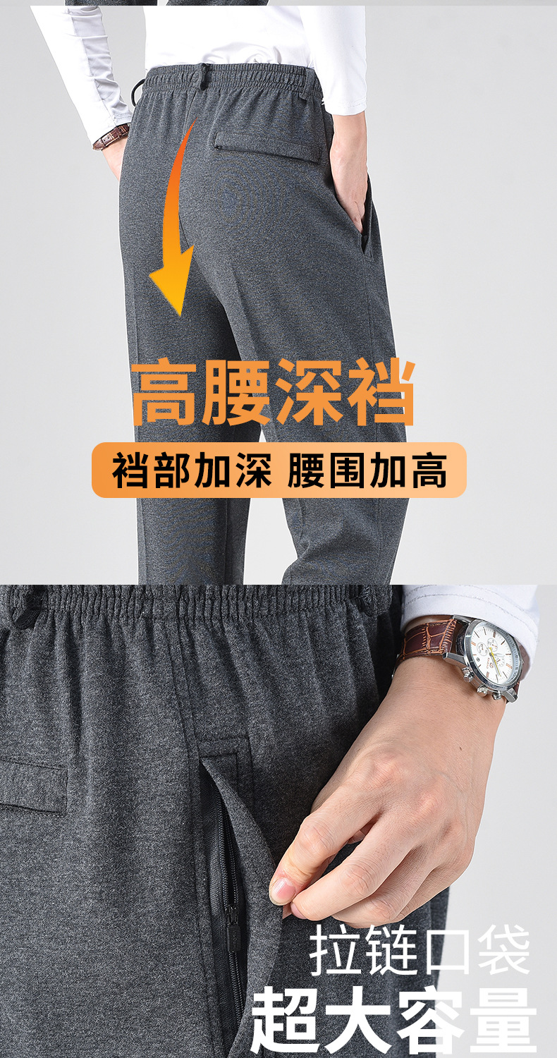 秋のハイウエスト深股下、秋冬用、中高年向け、伸縮性ウエスト、裏起毛、厚手、高齢者向けメンズスポーツパンツ