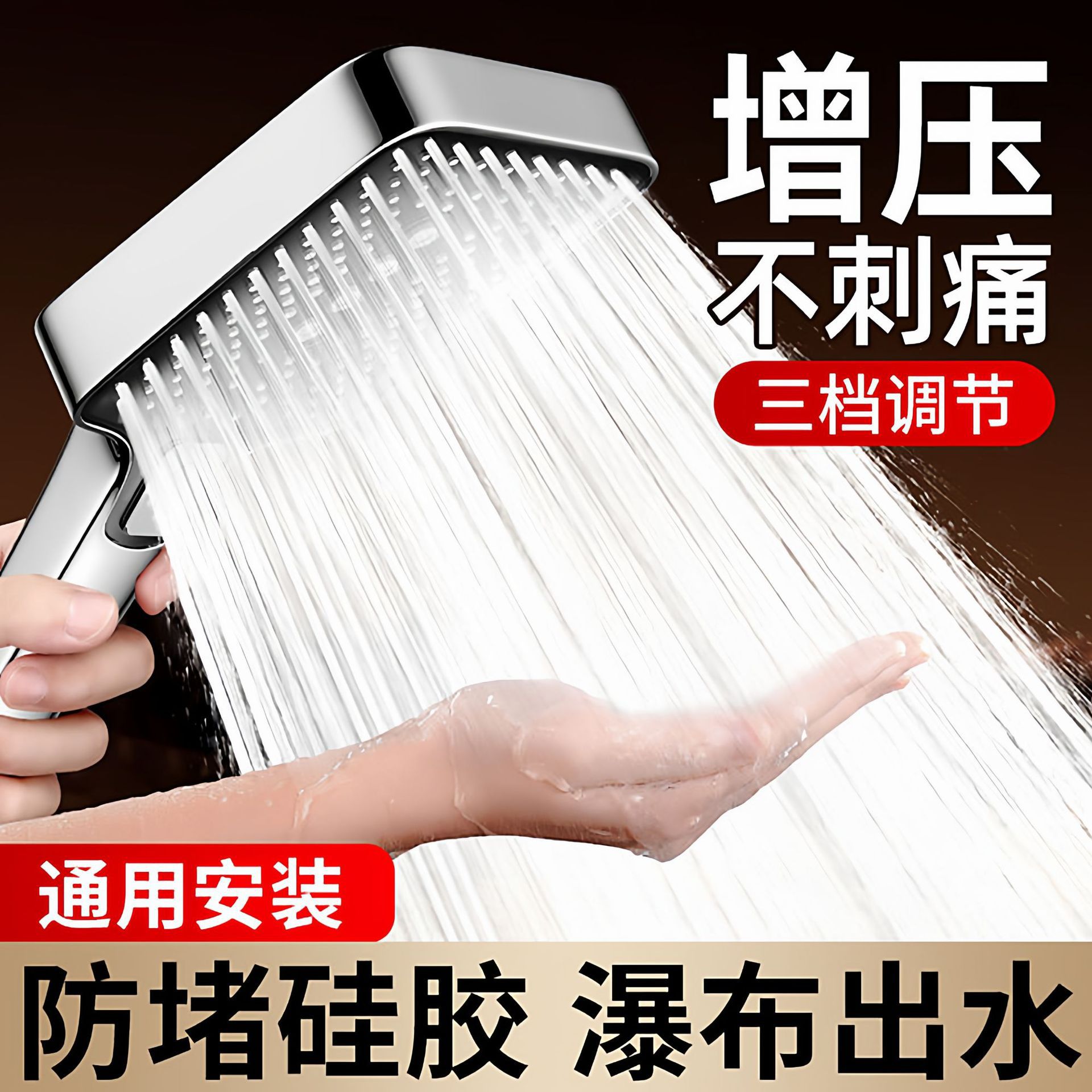 增压方形淋浴花洒喷头大出水热水器家用洗澡加压淋雨沐浴莲蓬头花