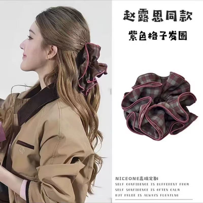 赵露思同款四层格纹头花大肠发圈高级感头绳低马尾丸子头发绳发饰