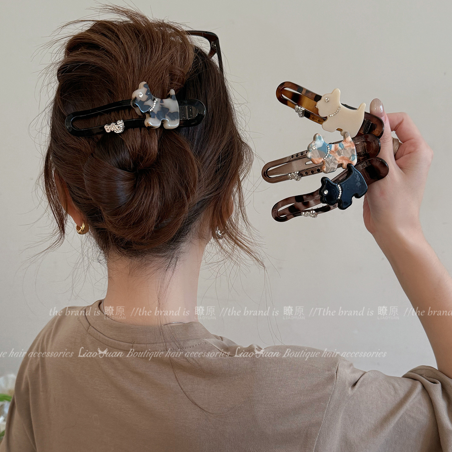 气质醋酸小狗一字扭扭夹女2025新款高级感发夹后脑勺盘发抓夹头饰