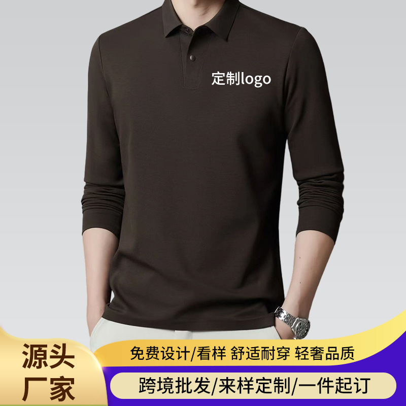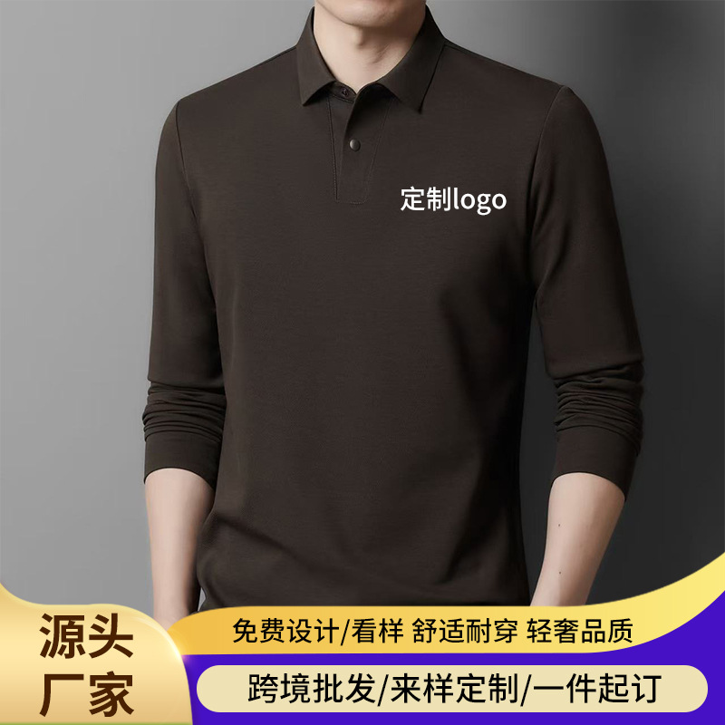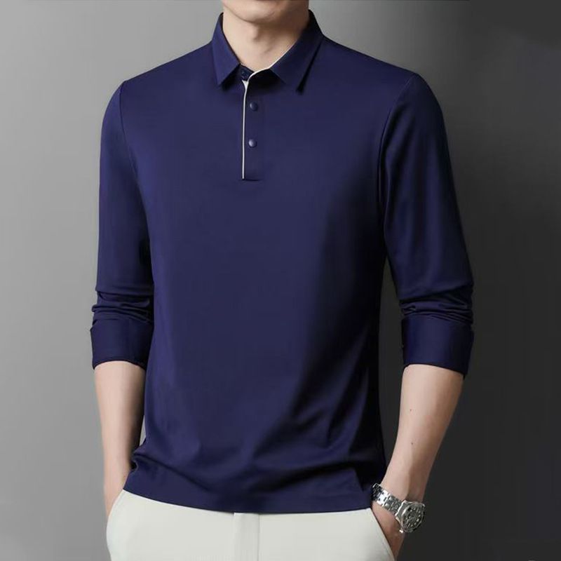 跨境代发气质polo衫无痕高档男士款翻领中青年休闲纯色长袖衬衫