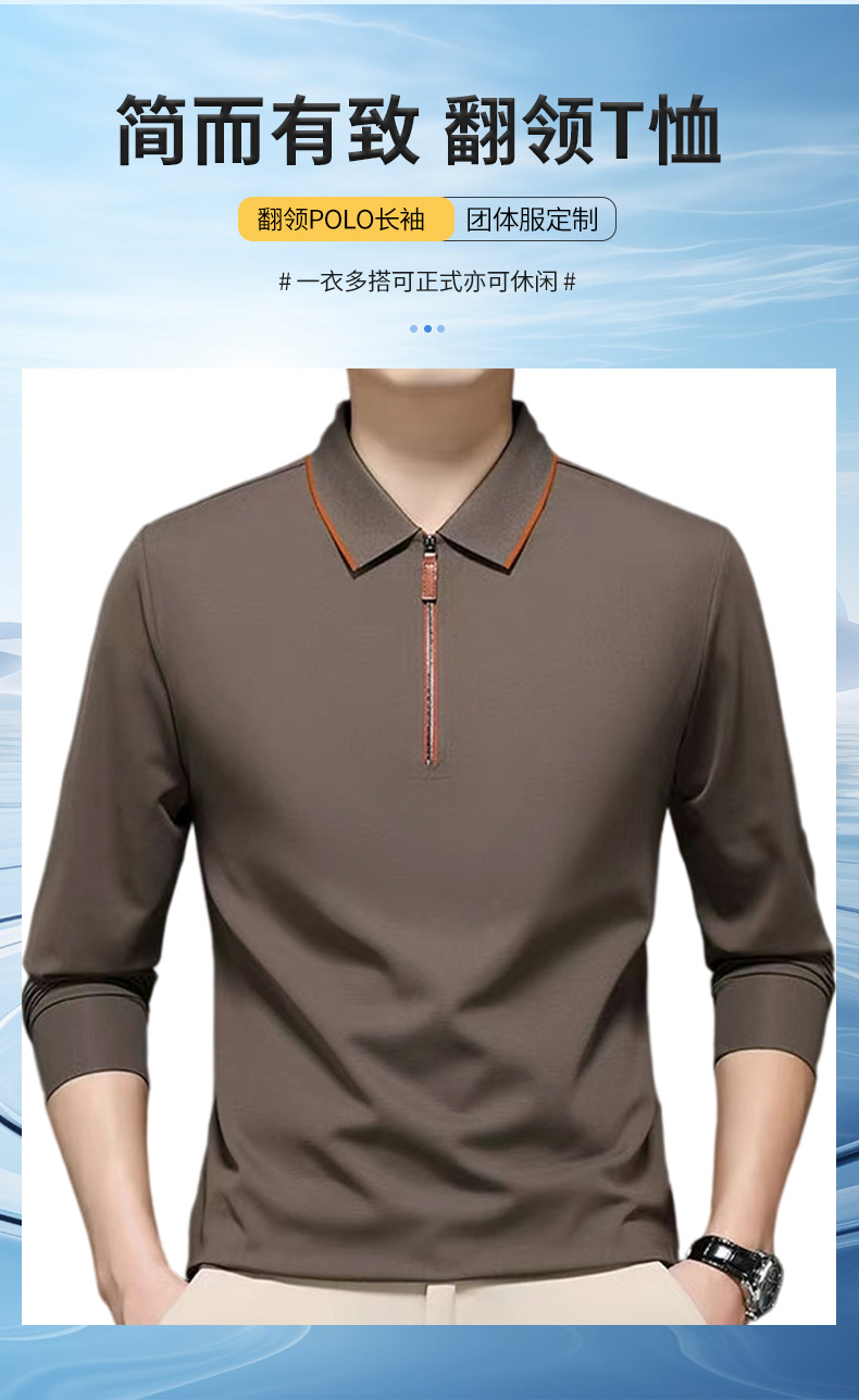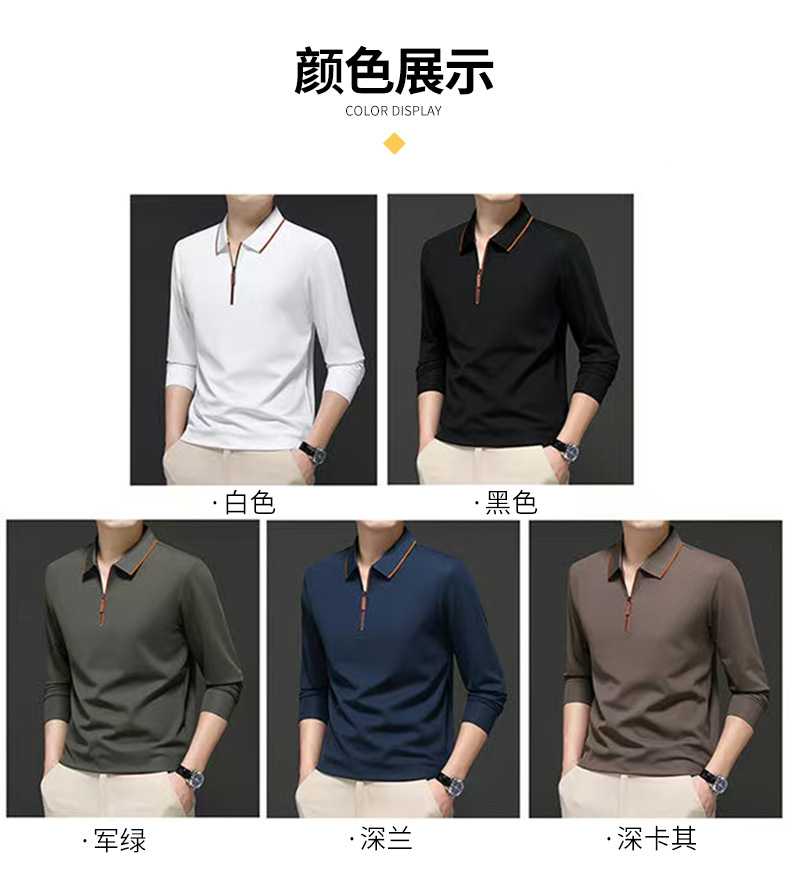 休闲通勤好搭翻领T恤拉链polo衫长袖男士上衣纯色上衣商务打底衫