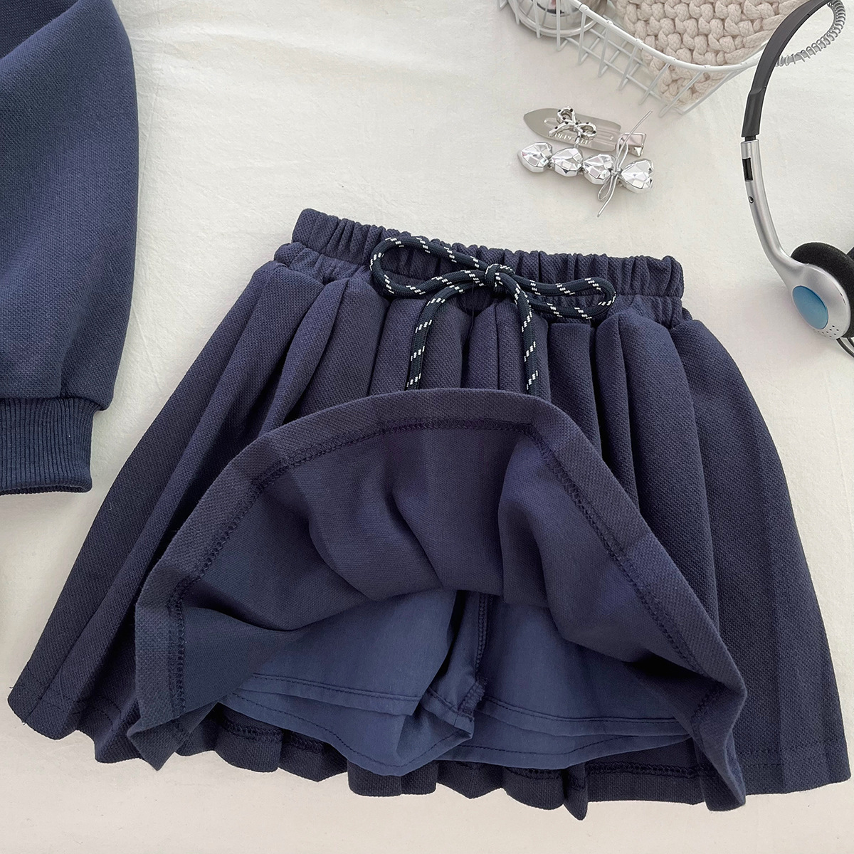 2025新款女童秋季套装儿童polo领学院风时髦卫衣半裙两件套17529