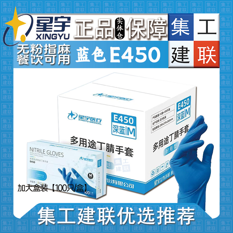 星宇深蓝色E450一次性丁腈手套餐饮生鲜加工加厚耐酸碱丁晴手套