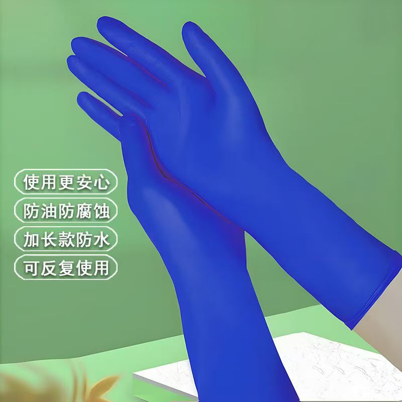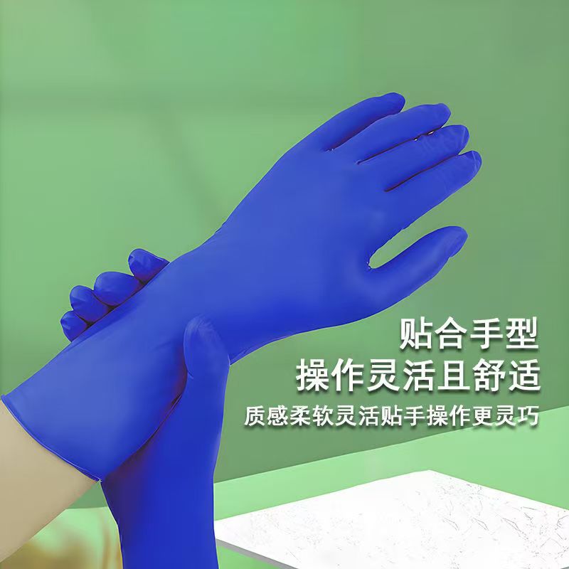 12寸深蓝超厚一次性手套橡胶丁晴高弹防水耐用食品加工保洁维修