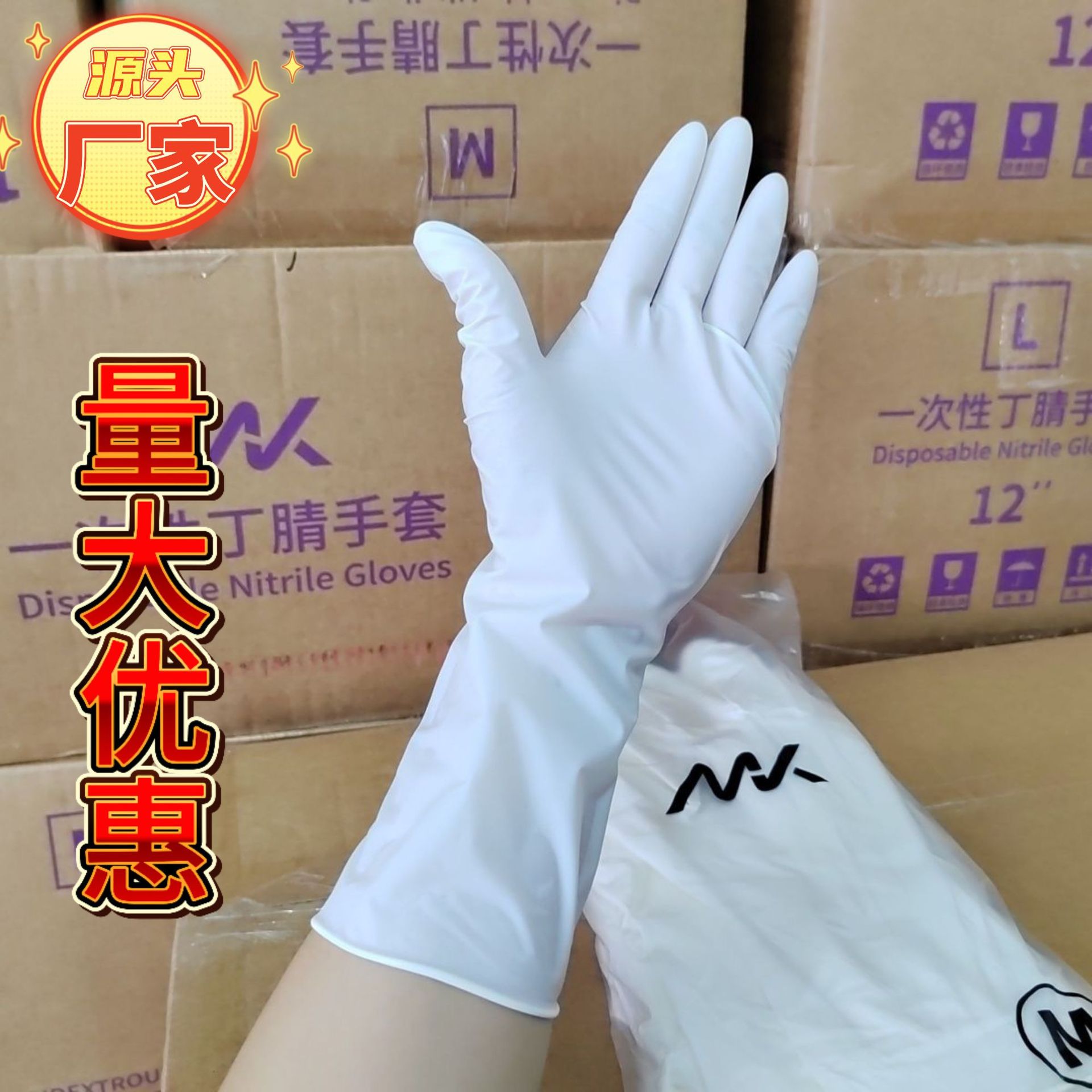 一次性丁腈手套12寸白色防滑耐磨家务清洁手套餐饮厨房酒店卫生用
