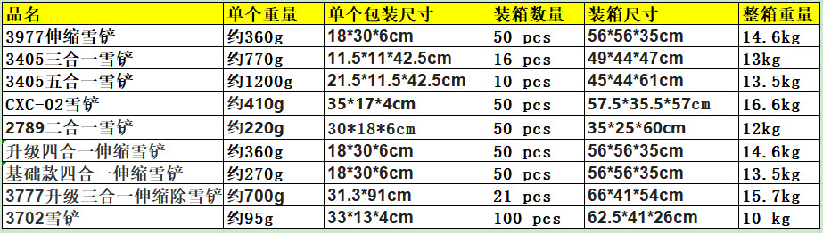 3977新款可伸缩雪铲【橙色opp装】,3977新款可伸缩雪铲【蓝色opp装】,3977新款可伸缩雪铲【橙色盒装】,3977新款可伸缩雪铲【蓝色盒装】,3405可旋转伸缩【升级版 三合一雪铲,3405可旋转伸缩【豪华版】五合一雪铲,2038四合一带安全锤,1280四合一带安全锤,CXC-02伸缩雪铲 黄色,CXC-02伸缩雪铲 蓝色,CXC-02伸缩雪铲 橙色,2789二合一蓝色,2789二合一黑色,2789二合一橙色,升级四合一伸缩雪铲 蓝色,升级四合一伸缩雪铲 橙色,升级四合一伸缩雪铲 黑色,基础款四合一伸缩雪铲 蓝色,基础款四合一伸缩雪铲 橙色,基础款四合一伸缩雪铲 黑色,3088伸缩雪铲,3777升级三合一伸缩除雪铲【橙色】,3777升级三合一伸缩除雪铲【蓝色】,3702雪铲 橙色,3702雪铲 红色,3702雪铲 蓝色,3702雪铲 绿色