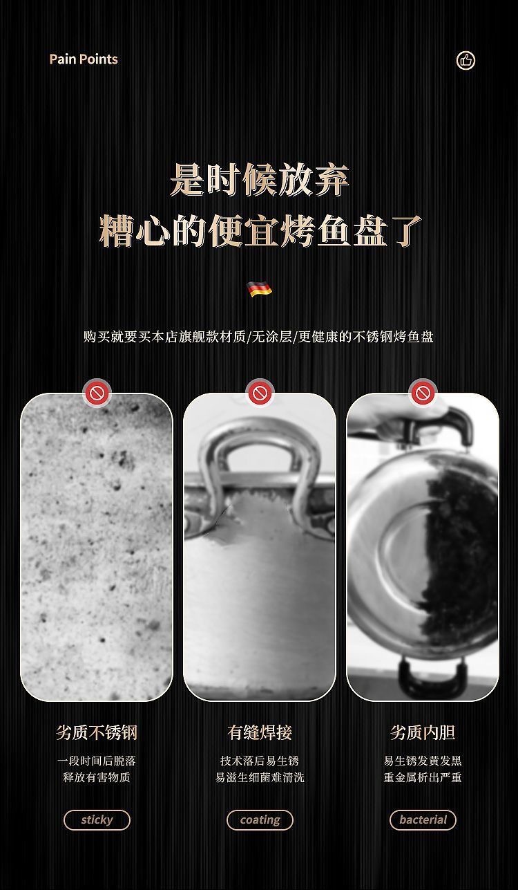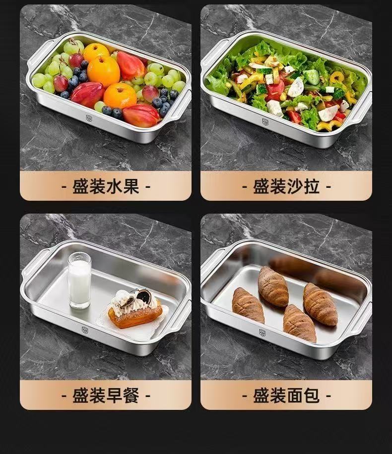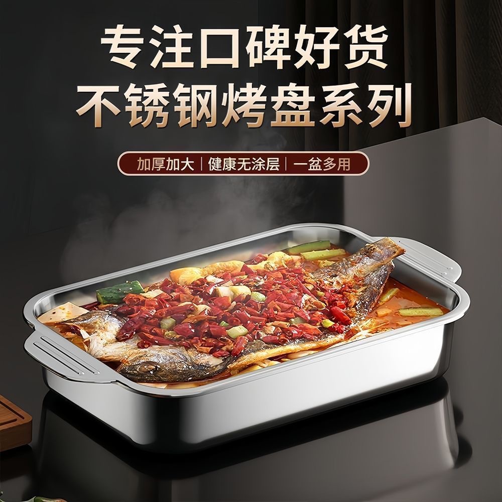 加厚不锈钢带盖烤鱼盘长方形家用食品级烤鱼专用烤盘加深托盘餐盘